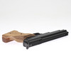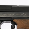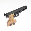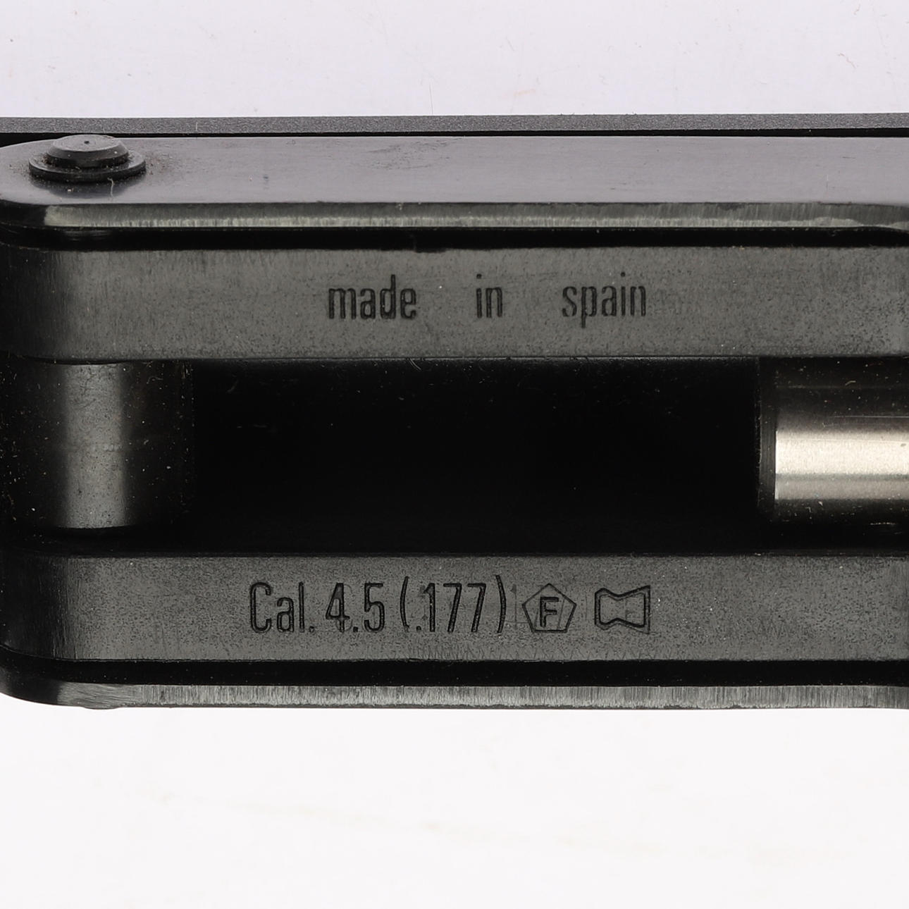 Calibre 4.5. Neumático. Empuñadura de pistola de madera con ángulo ajustable. Largo aproximado 31 cm.