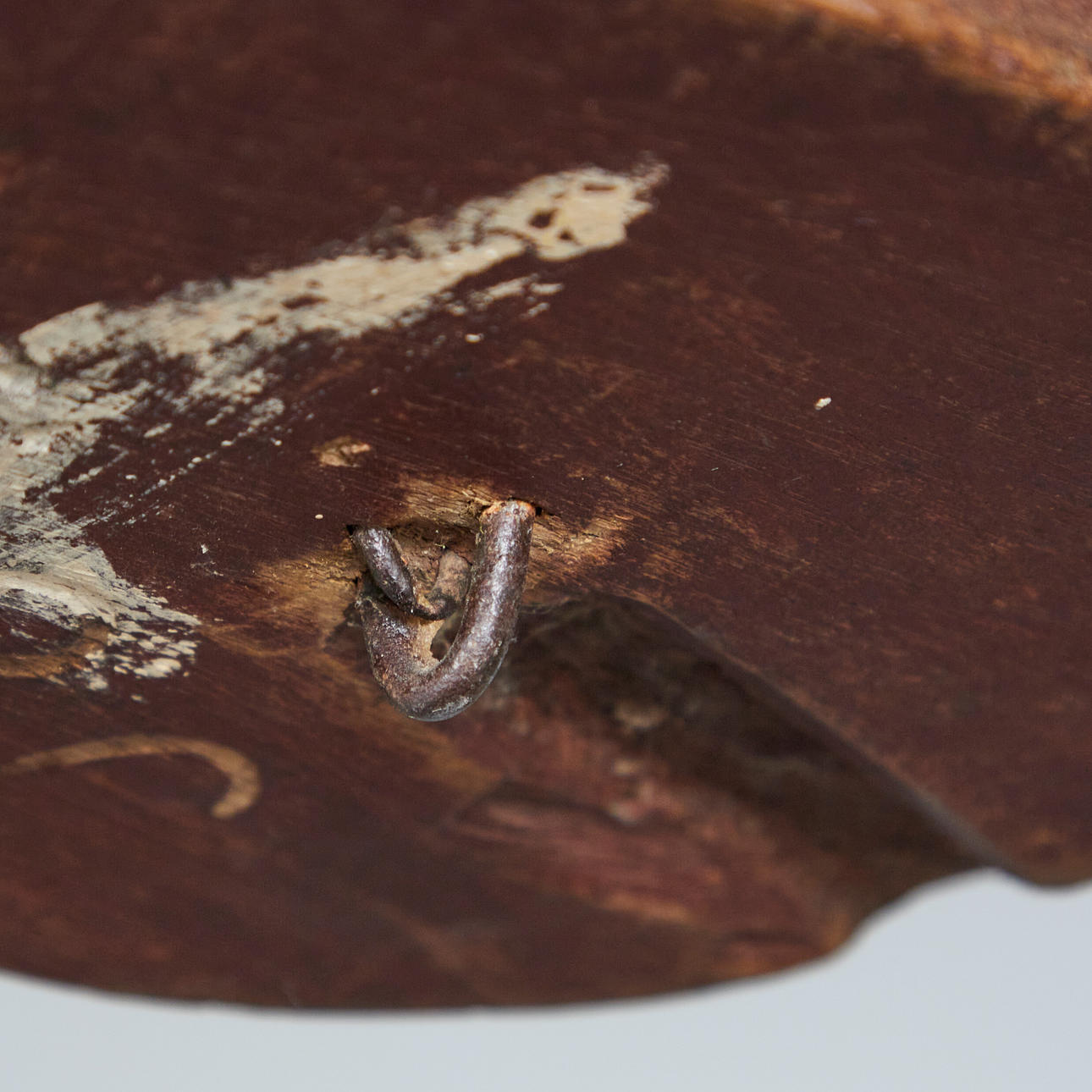 Restos de roce acordes a la antigüedad, arañazos y golpes parciales, grietas en la madera, así como restauración parcial provisional.
