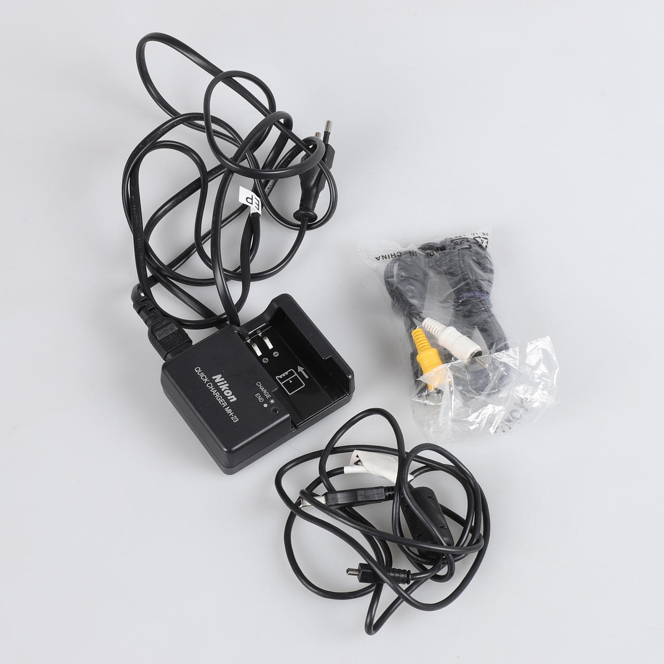 Dos lentes originales incluidos: AF-S Nikkor 3.5-5.6 / 18-55 mm y AF Nikkor 3.3-4.5 / 35-70 cm más antiguos. Viene con documentación, cargador y cables en estuche original.