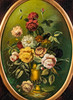Artista desconocido, bodegón de flores, óleo sobre tabla, hacia 1900, en el óvalo, ca. 61 x 44 cm, marco parcialmente cubierto de cuero, con marco aprox. 100x80cm.
