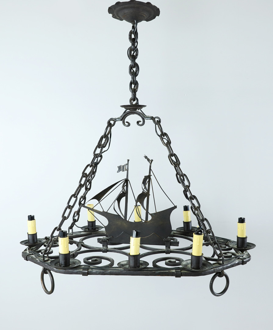 2126160. LÁMPARA DE TECHO, forjada, 1900.
