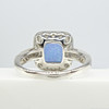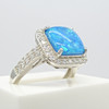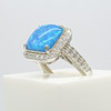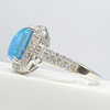 Un anillo de vestir de plata con opalita azul cabujón y circonitas cúbicas blancas.