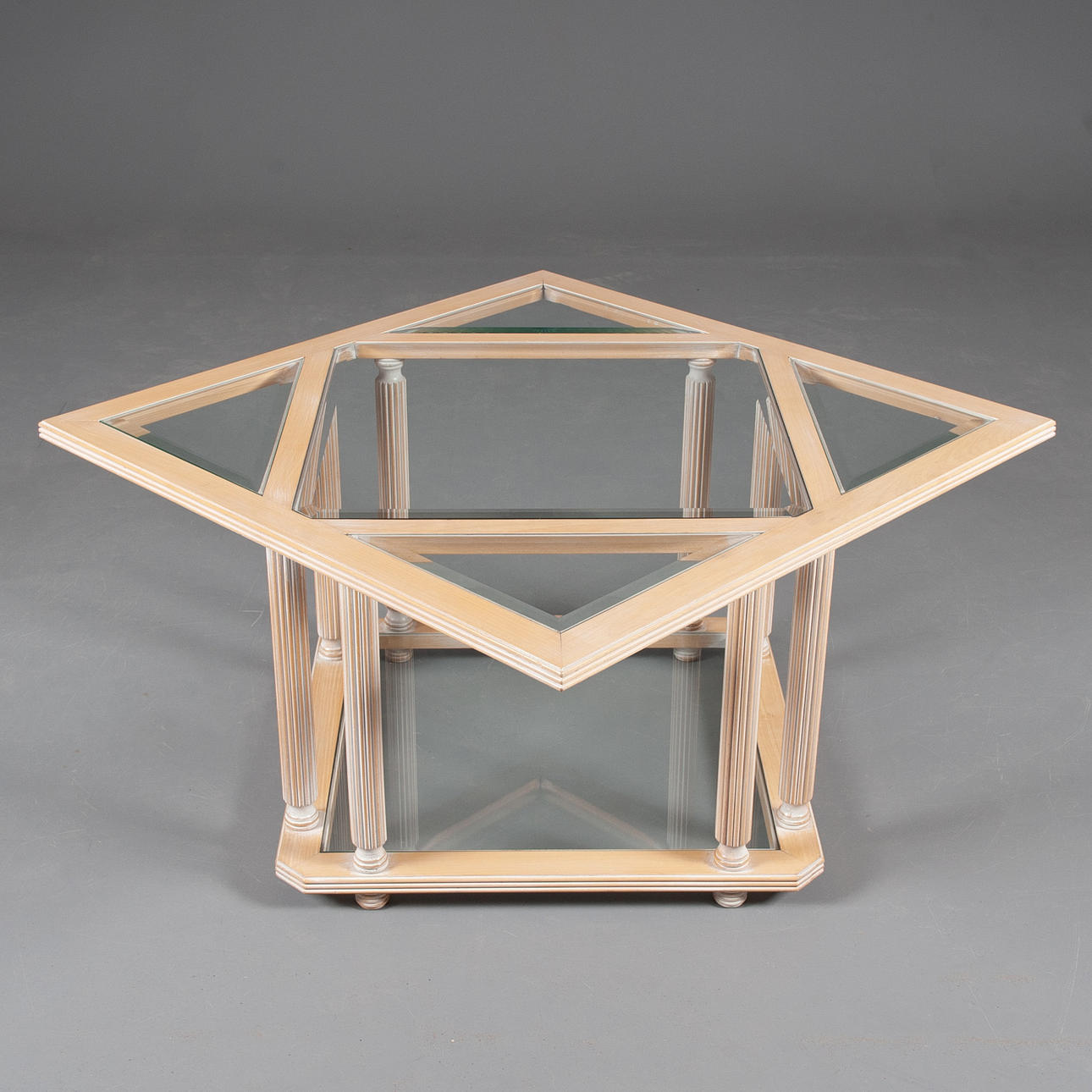 2140489. MESA DE CENTRO. Vidrio y madera. Italia.