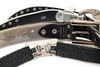 Cinturón de viaje con escamas en metal blanco, medida cintura max 95 cm.