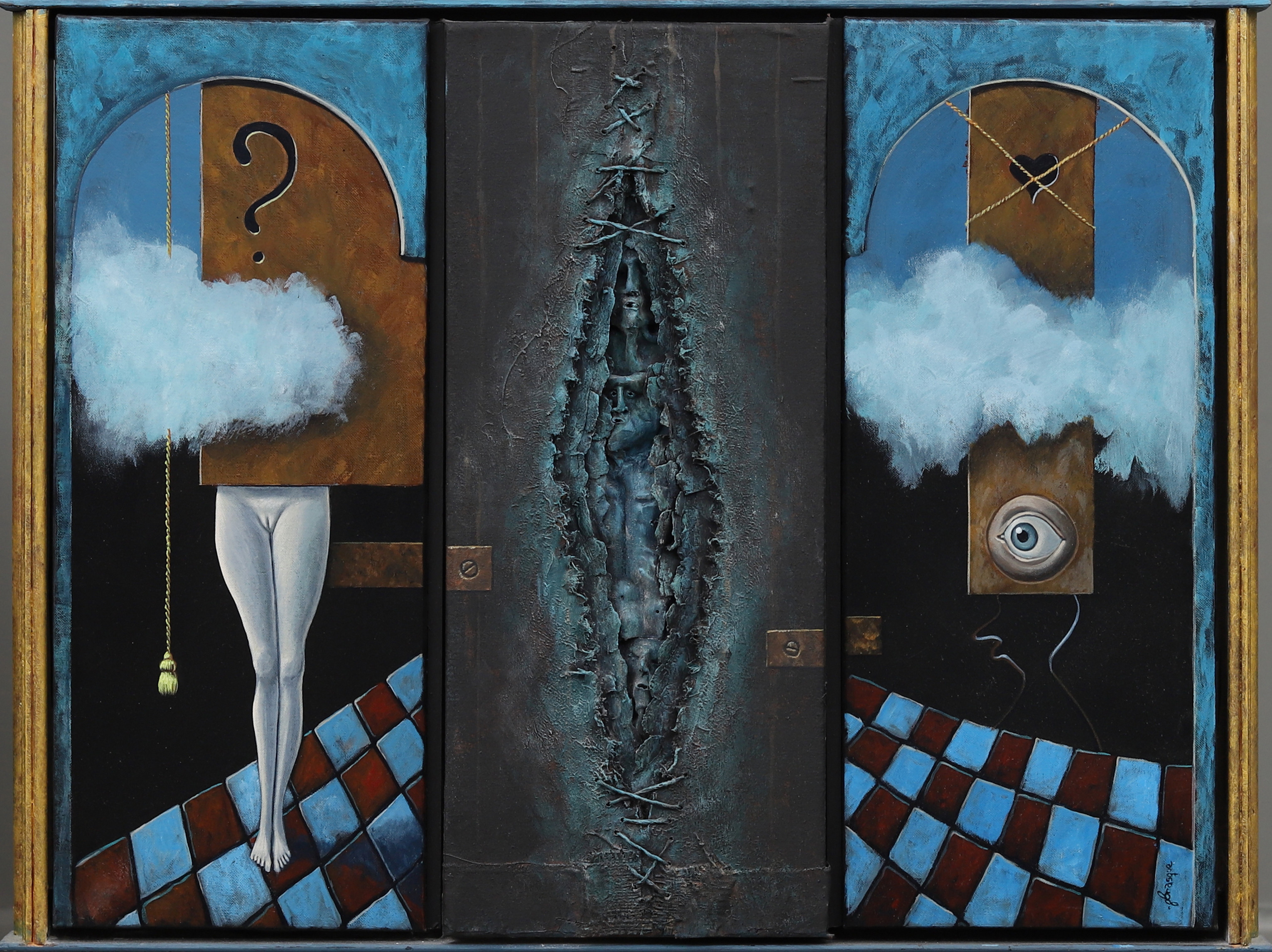 2144368. GERT BRASK. Voyeur, tríptico, técnica mixta, firmado.