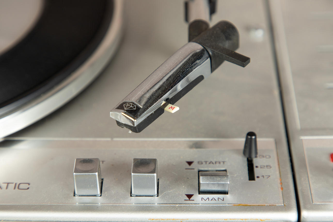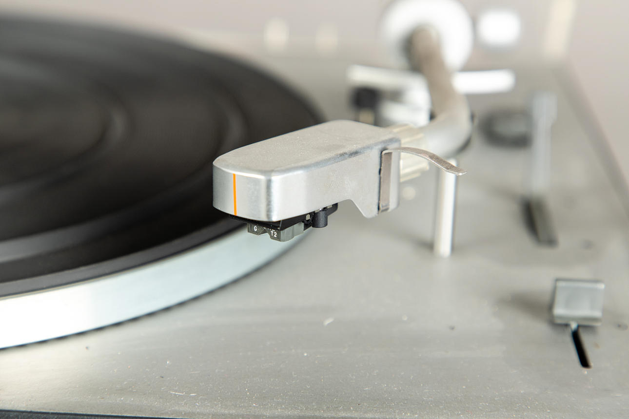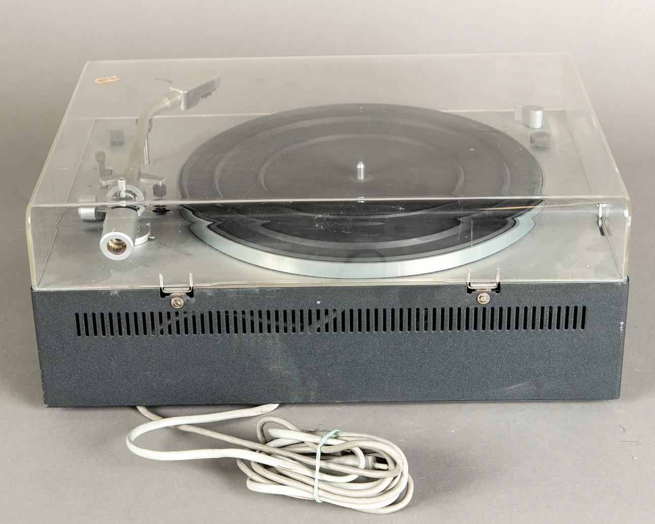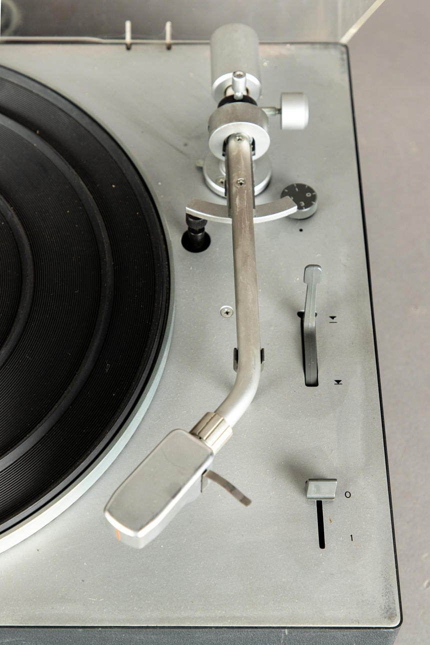 plástico/metal Tocadiscos Braun PS 1000, accionamiento con motor síncrono. Velocidad 13/33/45/78. Rango de ajuste fino de velocidad +/- 3%.