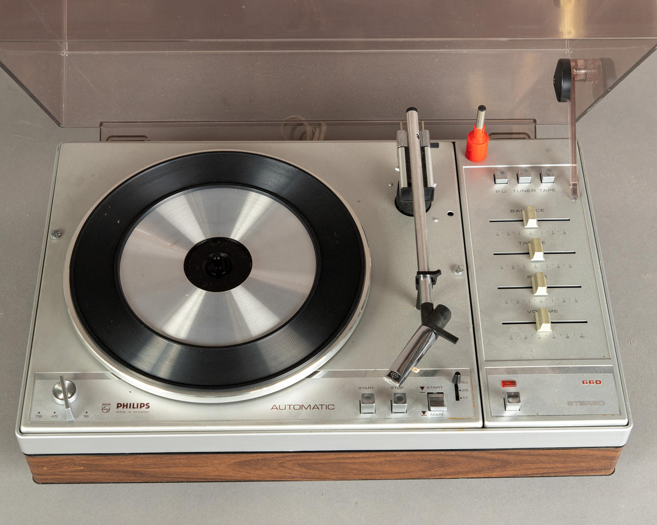 Al x An x Pr: 17,5 x 43 x 32 cm. Tocadiscos Philips Stereo 660. Al x An x Pr: 17,5 x 43 x 30 cm.