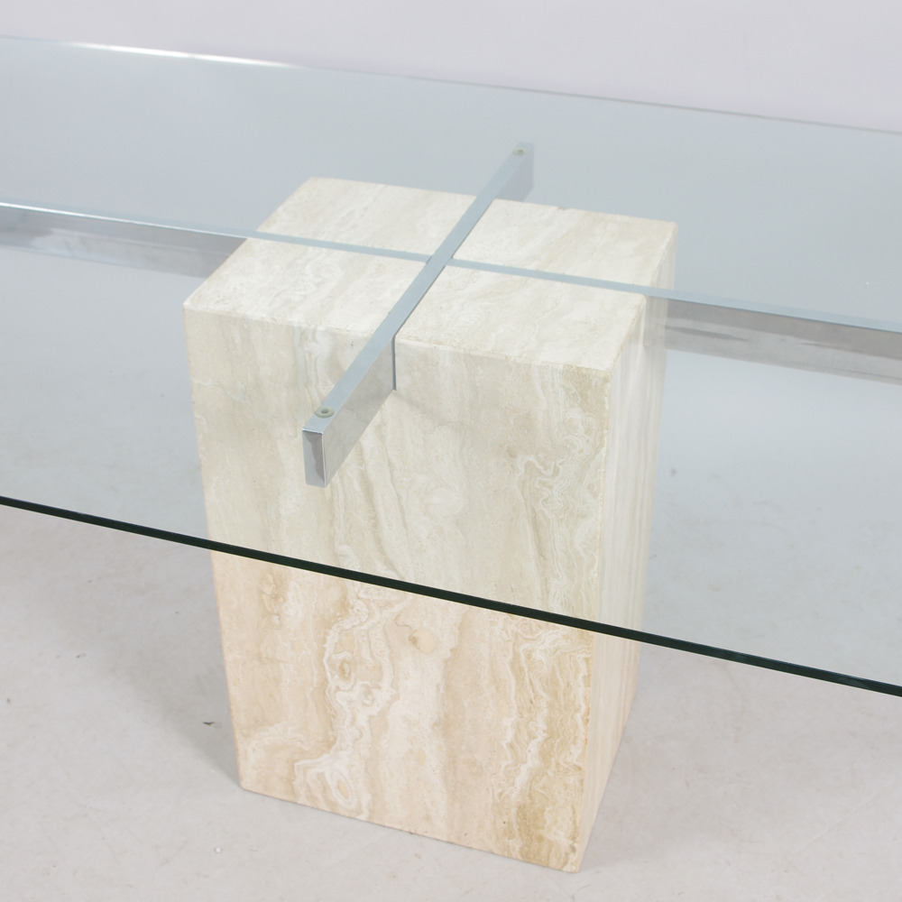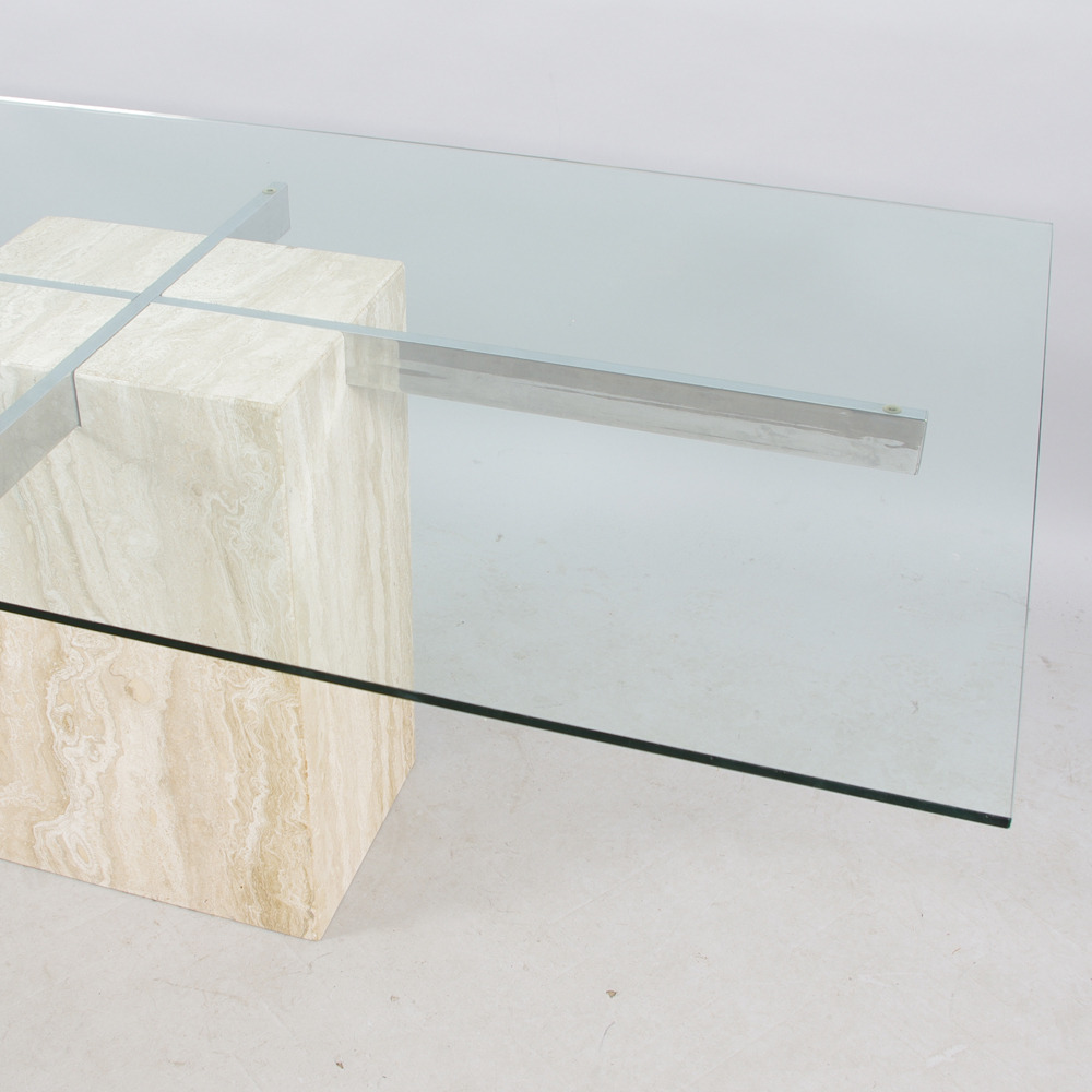 215245. MESA DE COMEDOR, vidrio, mármol, cromo.