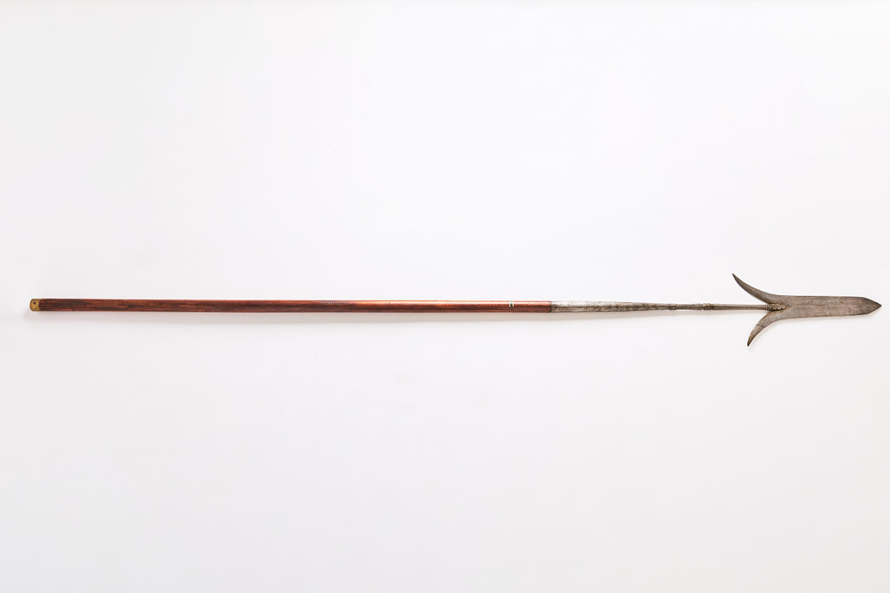 Hoja de acero de doble filo con puntas acampanadas, con mango de madera, longitud aproximada de 256 cm PROCEDENCIA: Colección de armas Ediinska Markaryd.