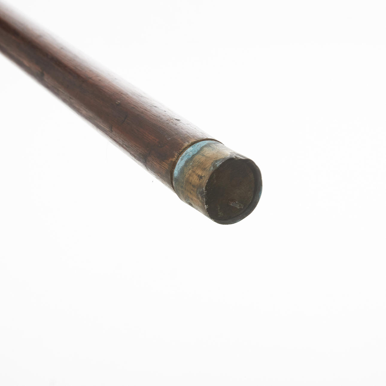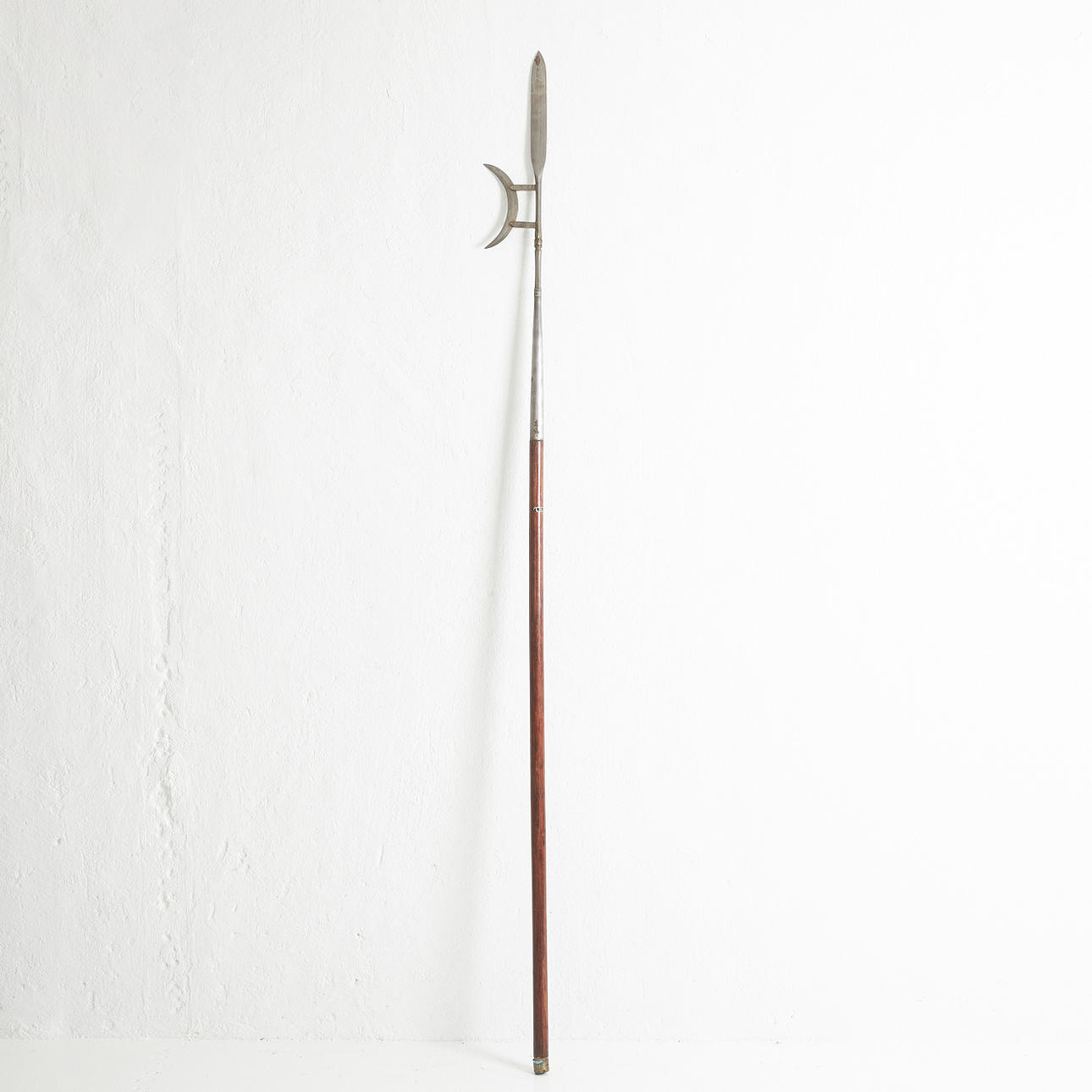 Punta de lanza con hoja en forma de media luna de acero, montada sobre eje de madera, longitud aproximada de 257 cm PROCEDENCIA: Colección de armas Ediinska Markaryd.