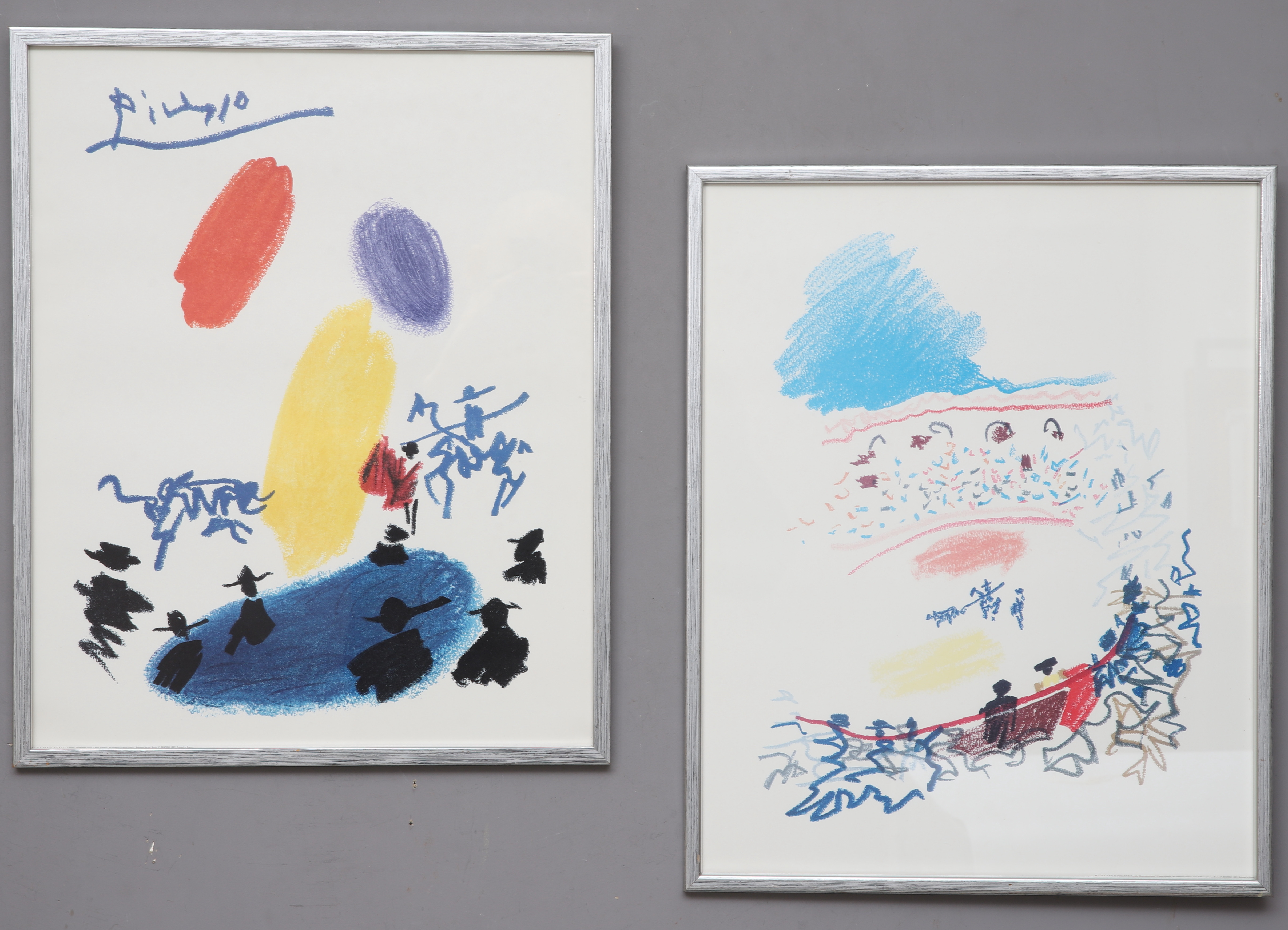 2162112. PABLO PICASSO. Impresión offset, 2 piezas, composiciones de figuras.