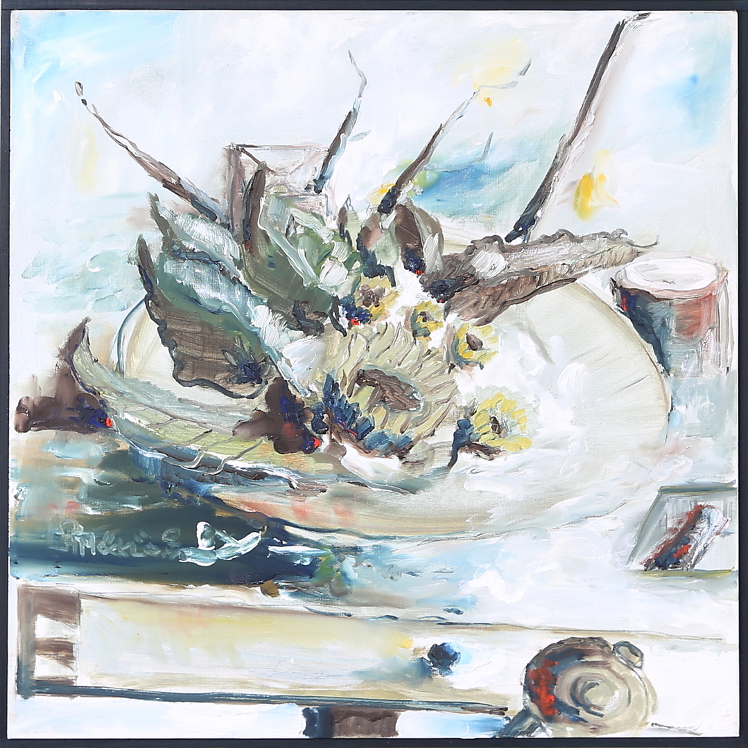 216375. GISELA MÖCKLÖ. Bodegón, óleo sobre lienzo.
