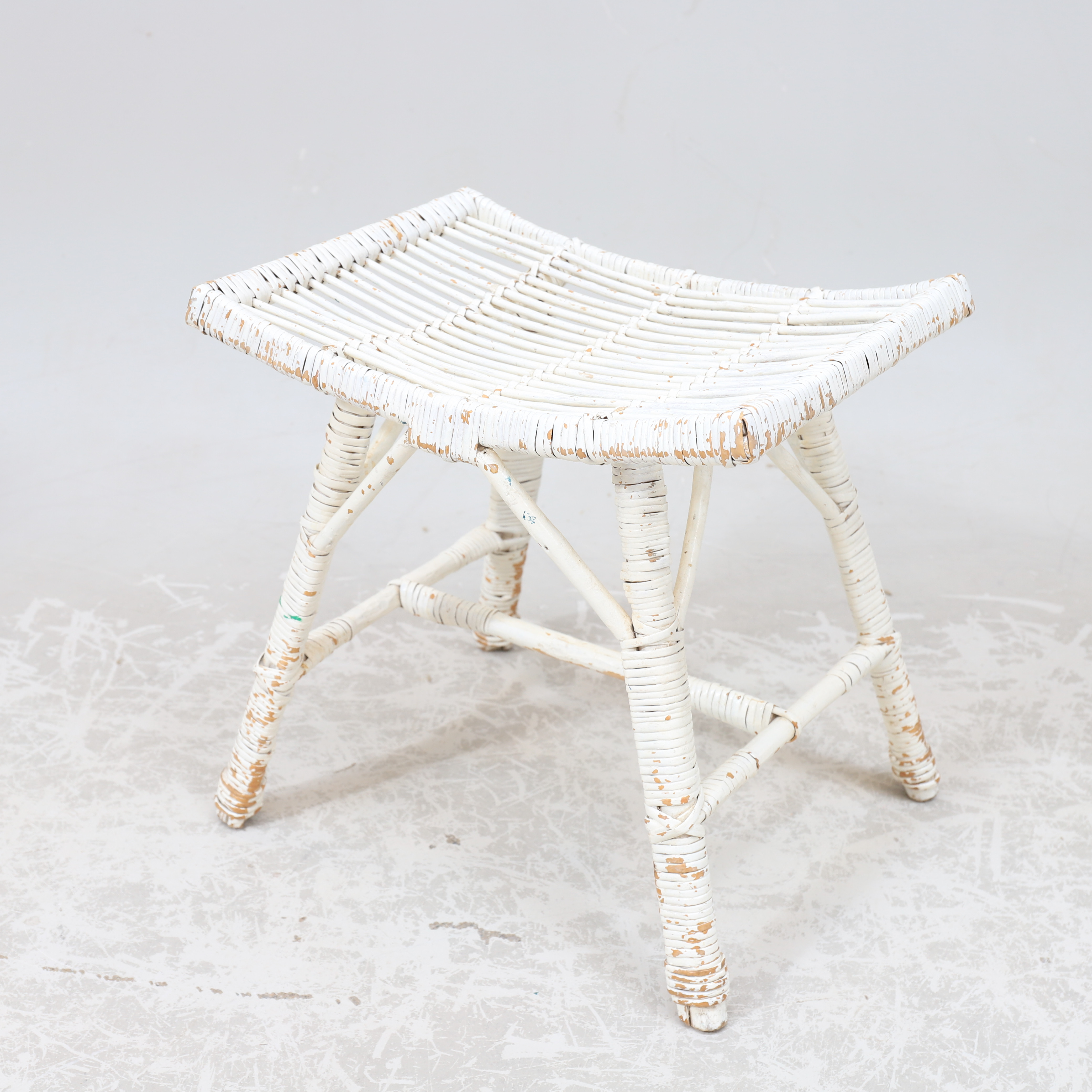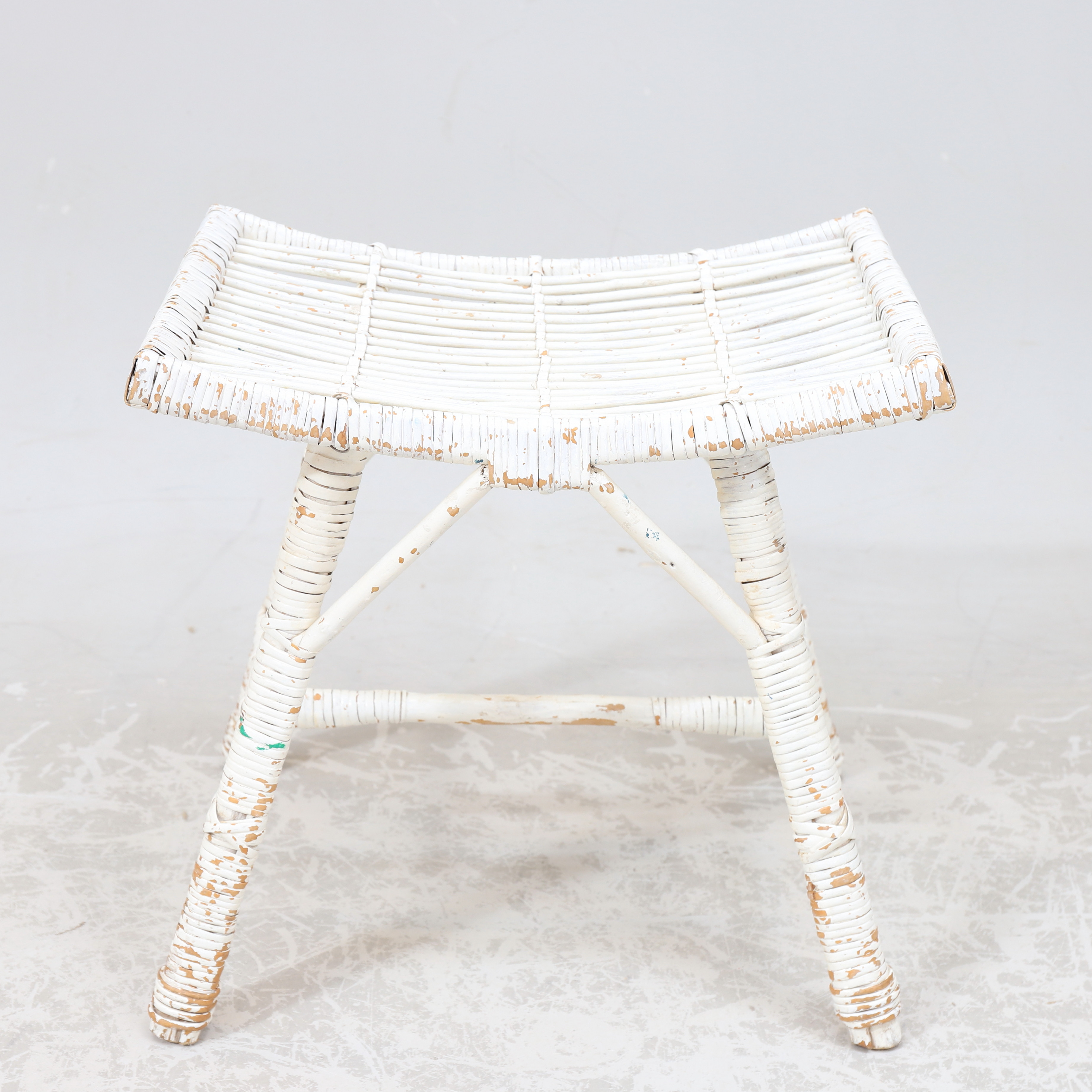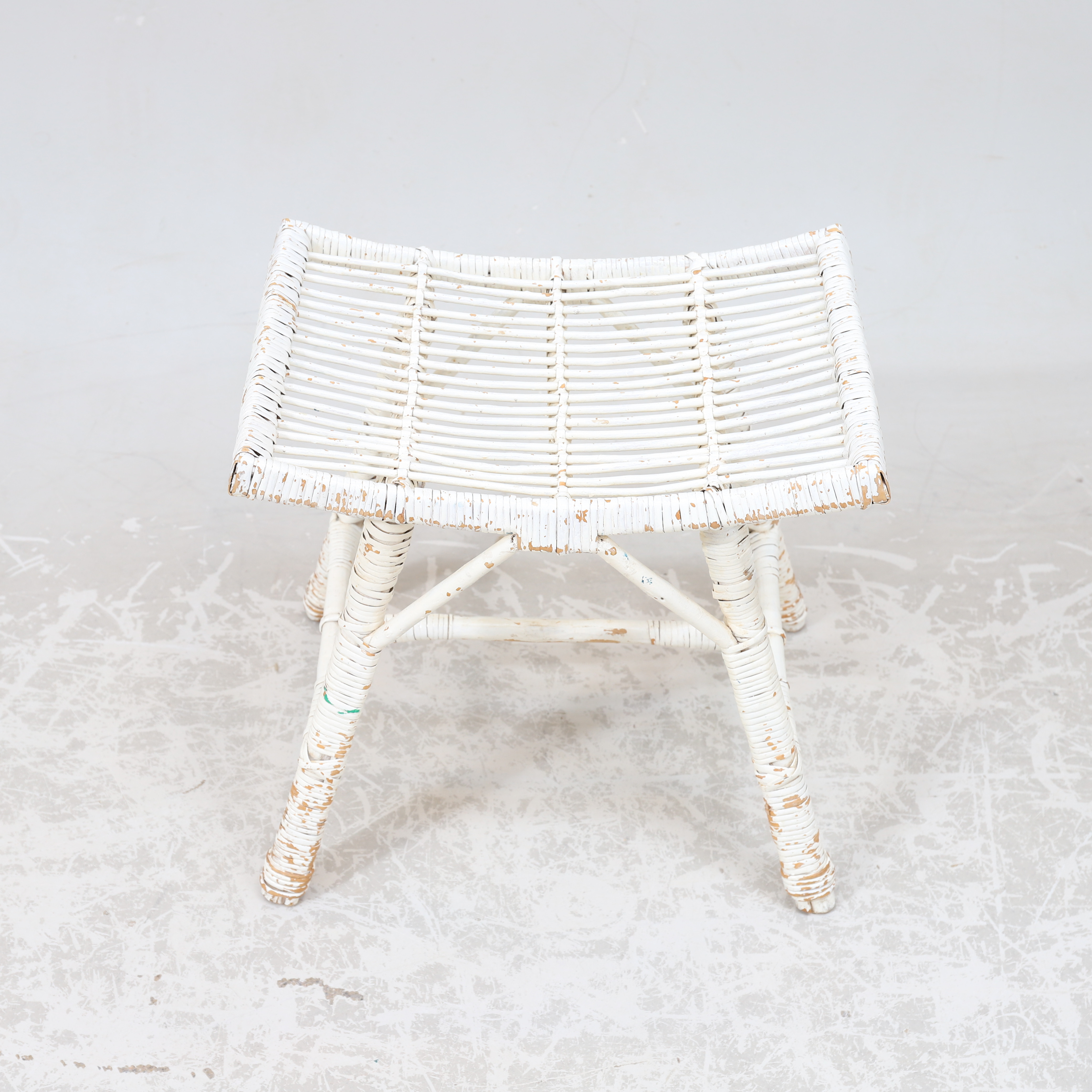 2166900. Taburete, mimbre pintado de blanco, siglo XX.