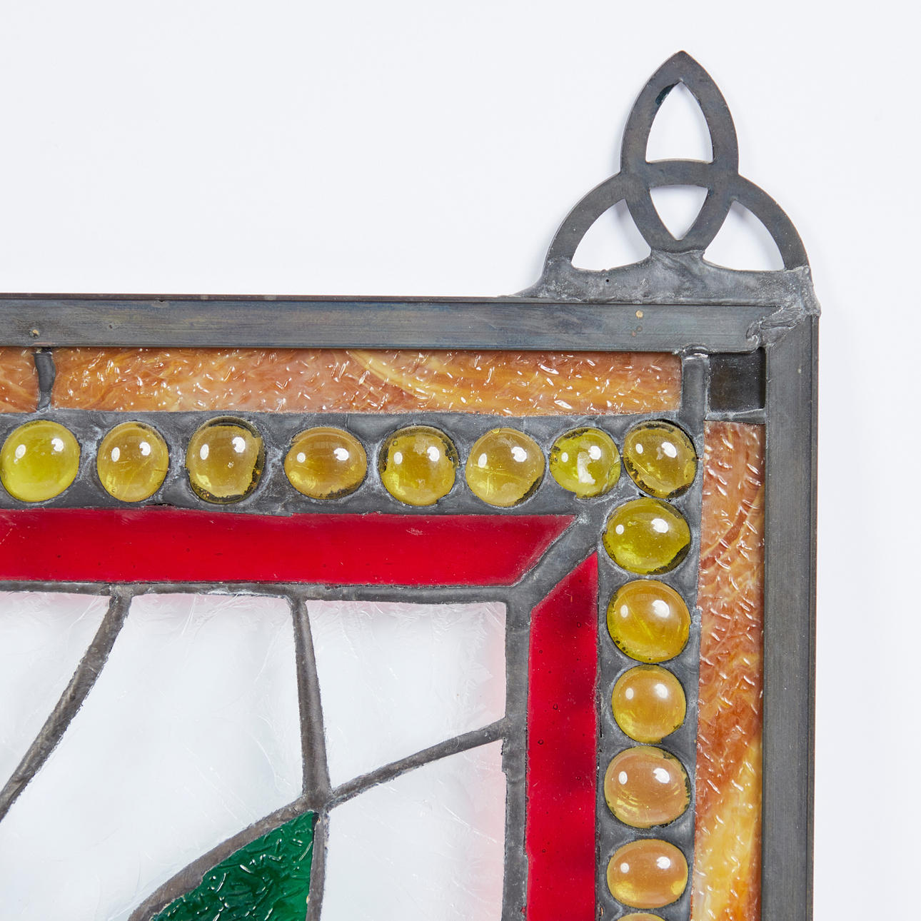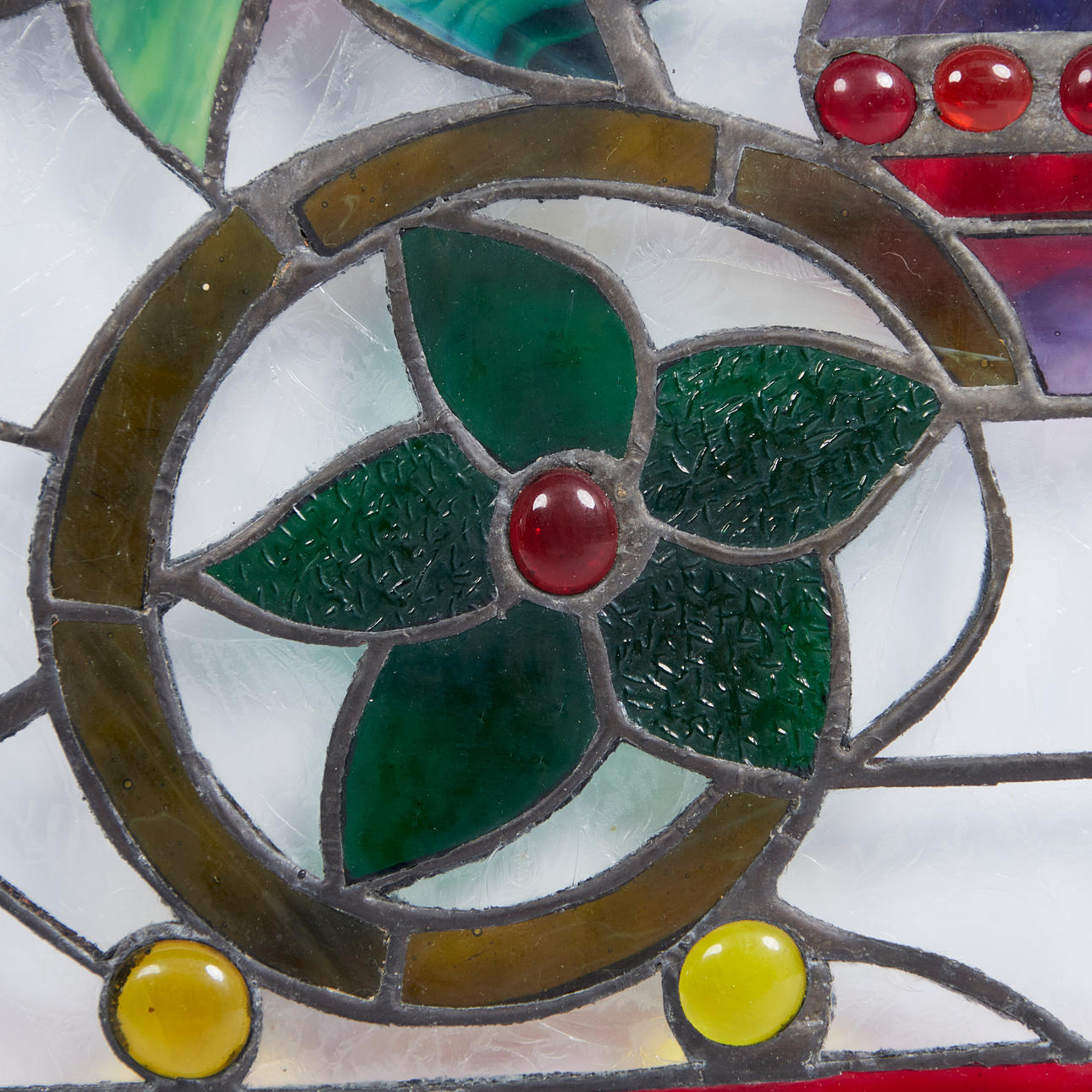 Vidrieras Art Deco / vidrieras, vidrio, plomo. Vitral rectangular con cristales en rojo, verde y azul con motivo floral, engastado en varillas de plomo, con dispositivo de suspensión en la parte superior, 89x52,5cm.