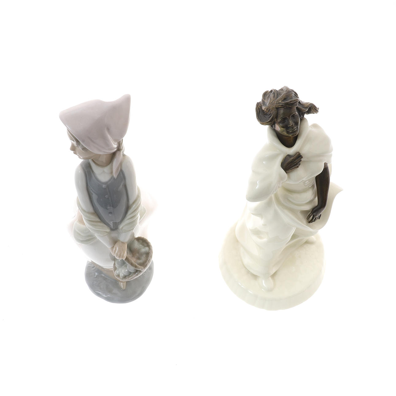 24cm de alto, y una figura Nao de una niña sosteniendo una canasta, 24cm de alto (2).