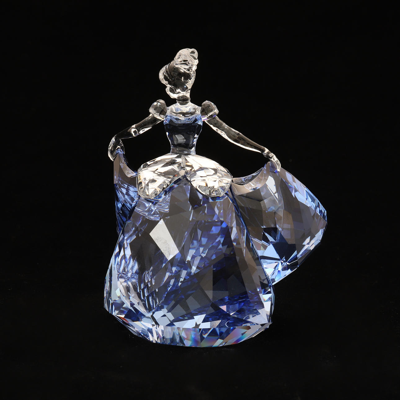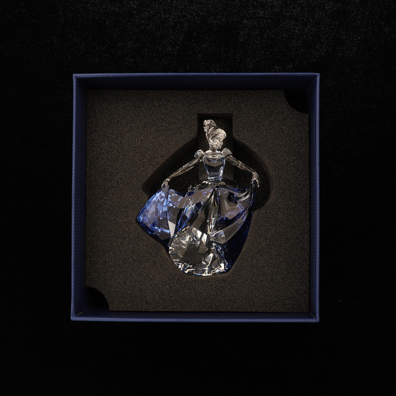 número 5089525, cenicienta bailando, en cristal azul y transparente, 13 cm de alto, en caja original equipada con tapa exterior de cartón.