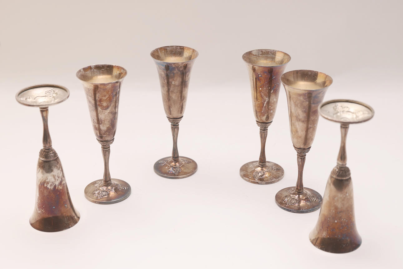 2196986. CHAMPAÑERA Y SEIS COPAS ALPACA PLATEADA.