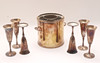 CHAMPAÑERA Y SEIS COPAS ALPACA PLATEADA.