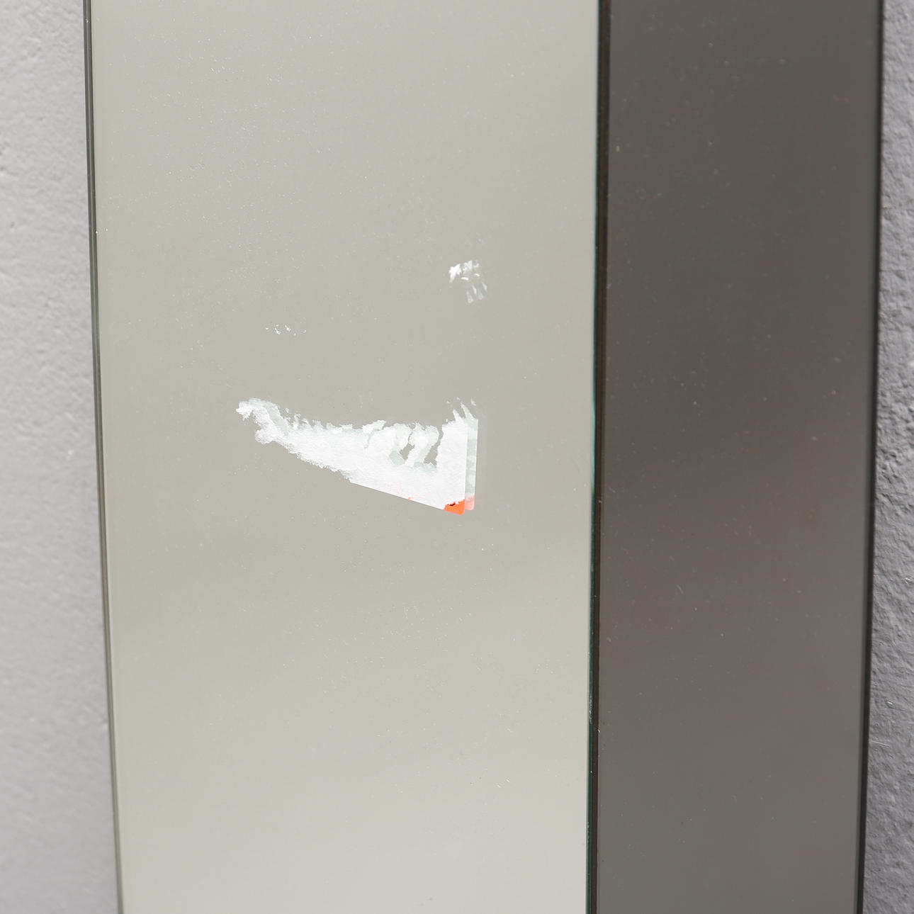 residuo de etiqueta en el espejo.