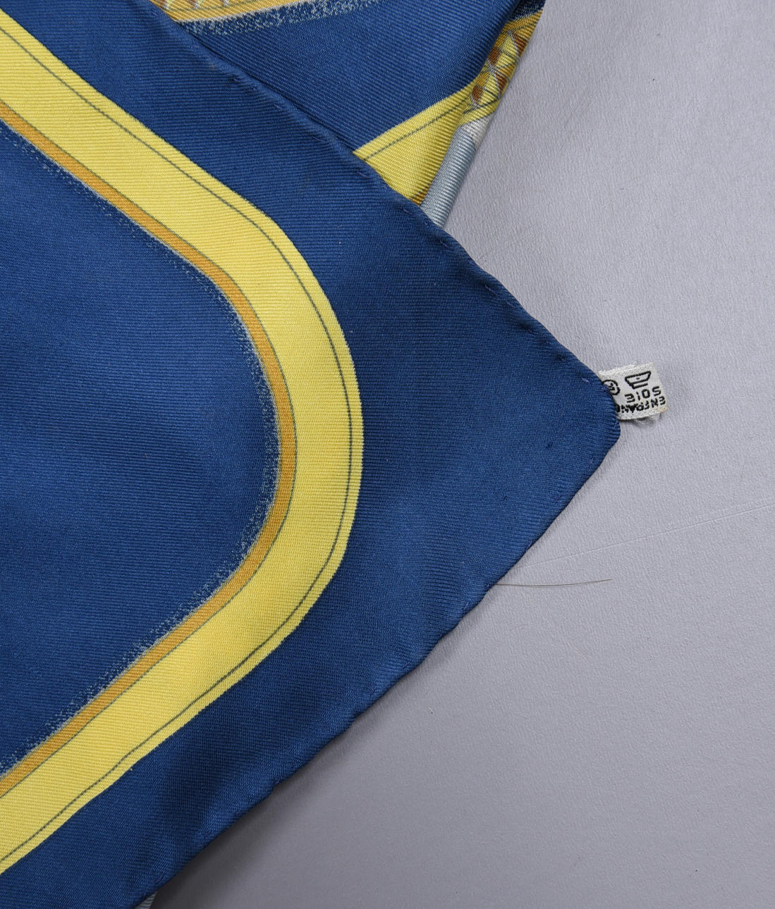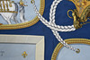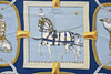 Pañuelo de seda, combinación de colores en azul. Diseño Jacques Eudel en 1962. Dimensiones aproximadas 90 x 90 cm.