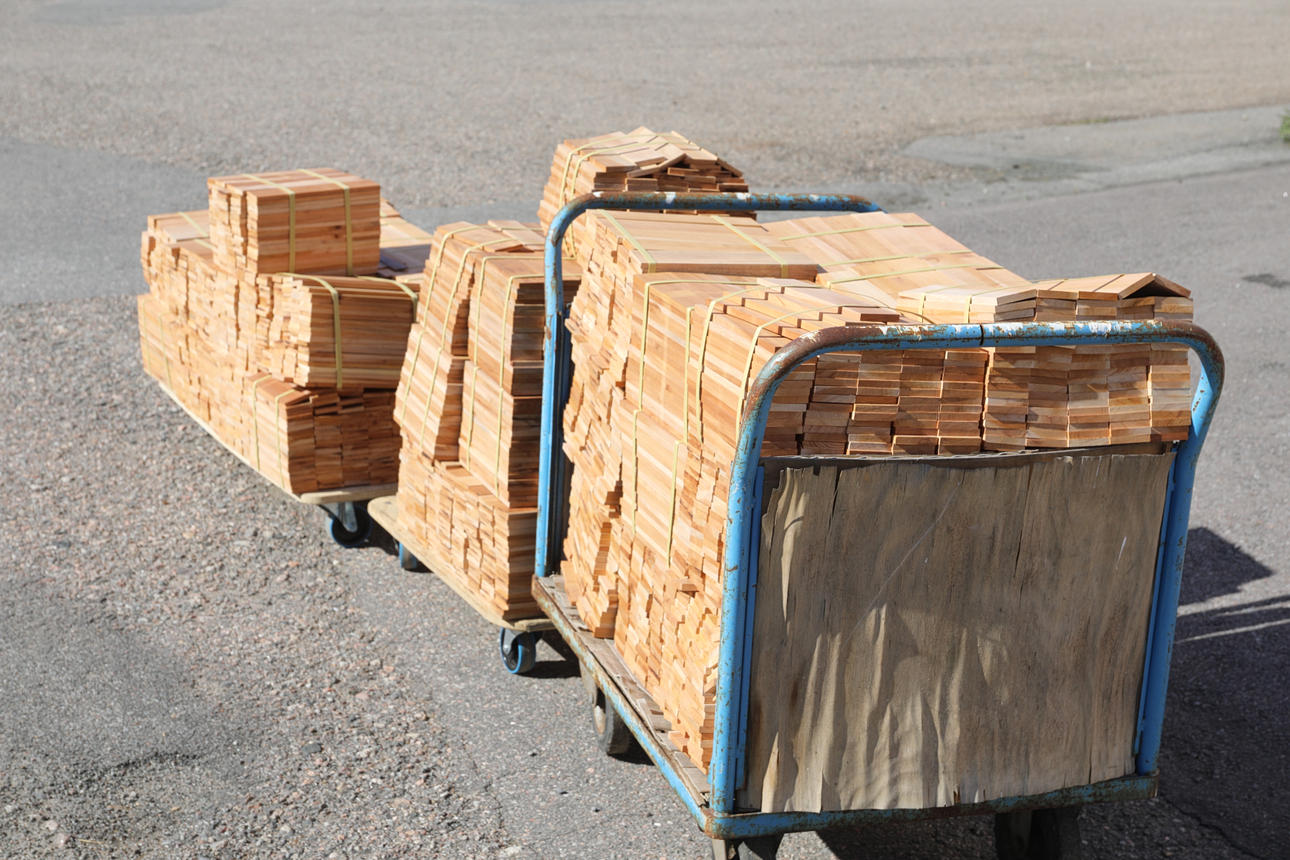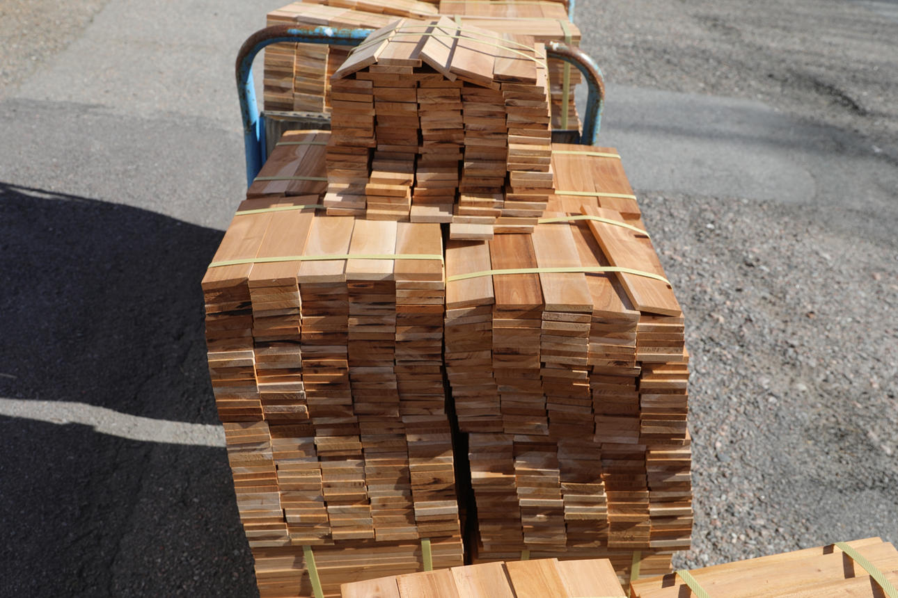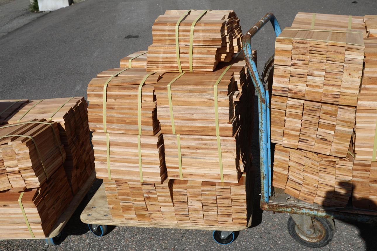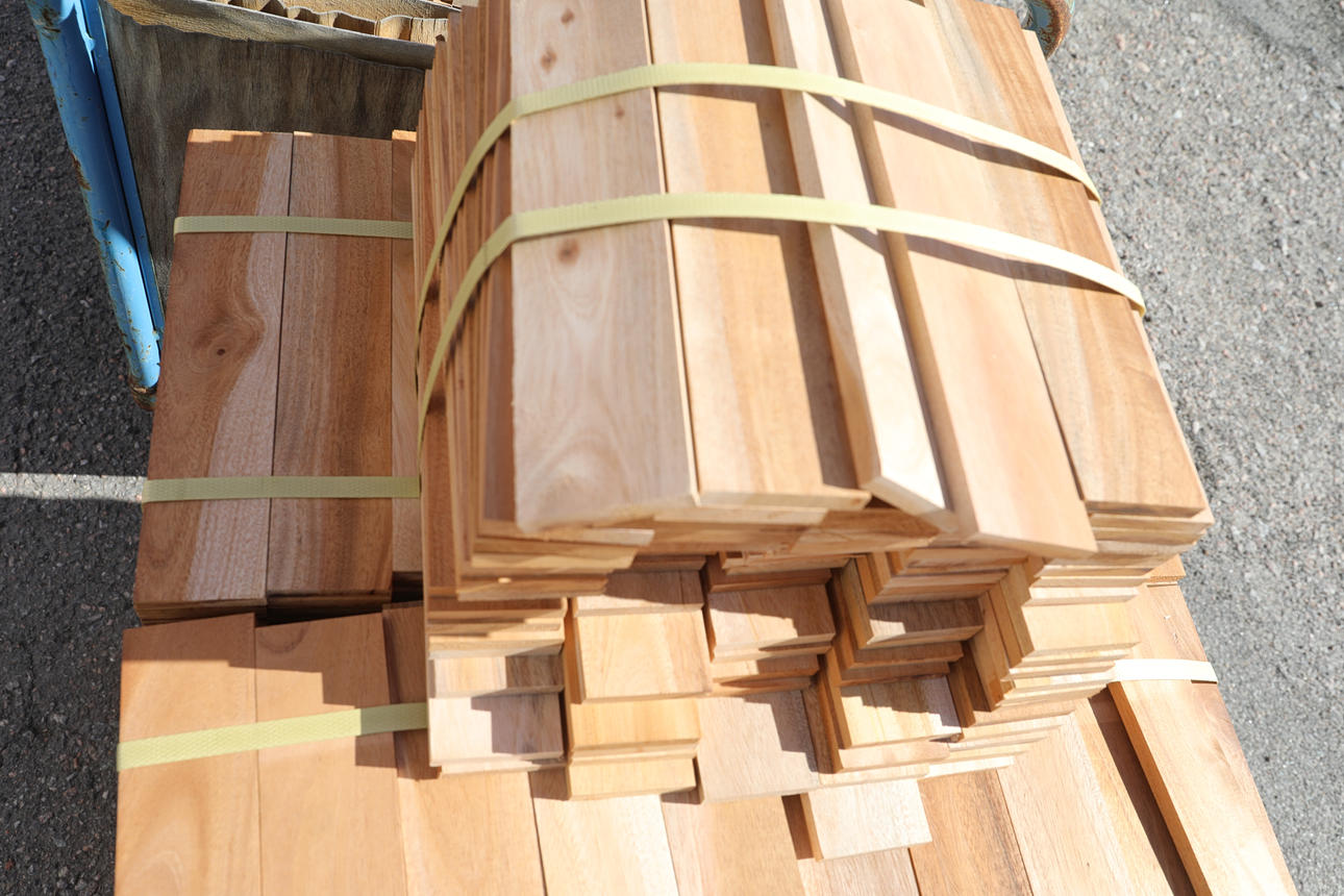 aproximadamente 50 paquetes de 1,80 m² cada uno, parquet macizo en espiga de caoba sin tratar cada listón mide 30x26 cm espesor 10 mm.
