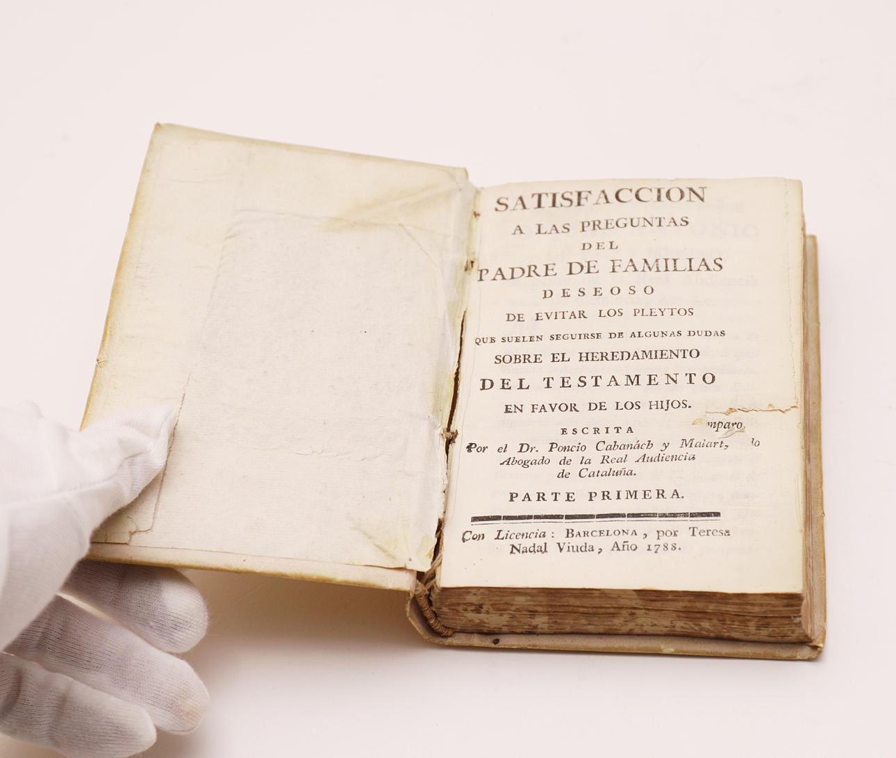 "Satisfaccion a las preguntas del padre de familias deseoso de evitas los pleytos que suelen seguirse de algunas dudas del testamento a favor de los hijos", Barcelona, 1788. En castellano.