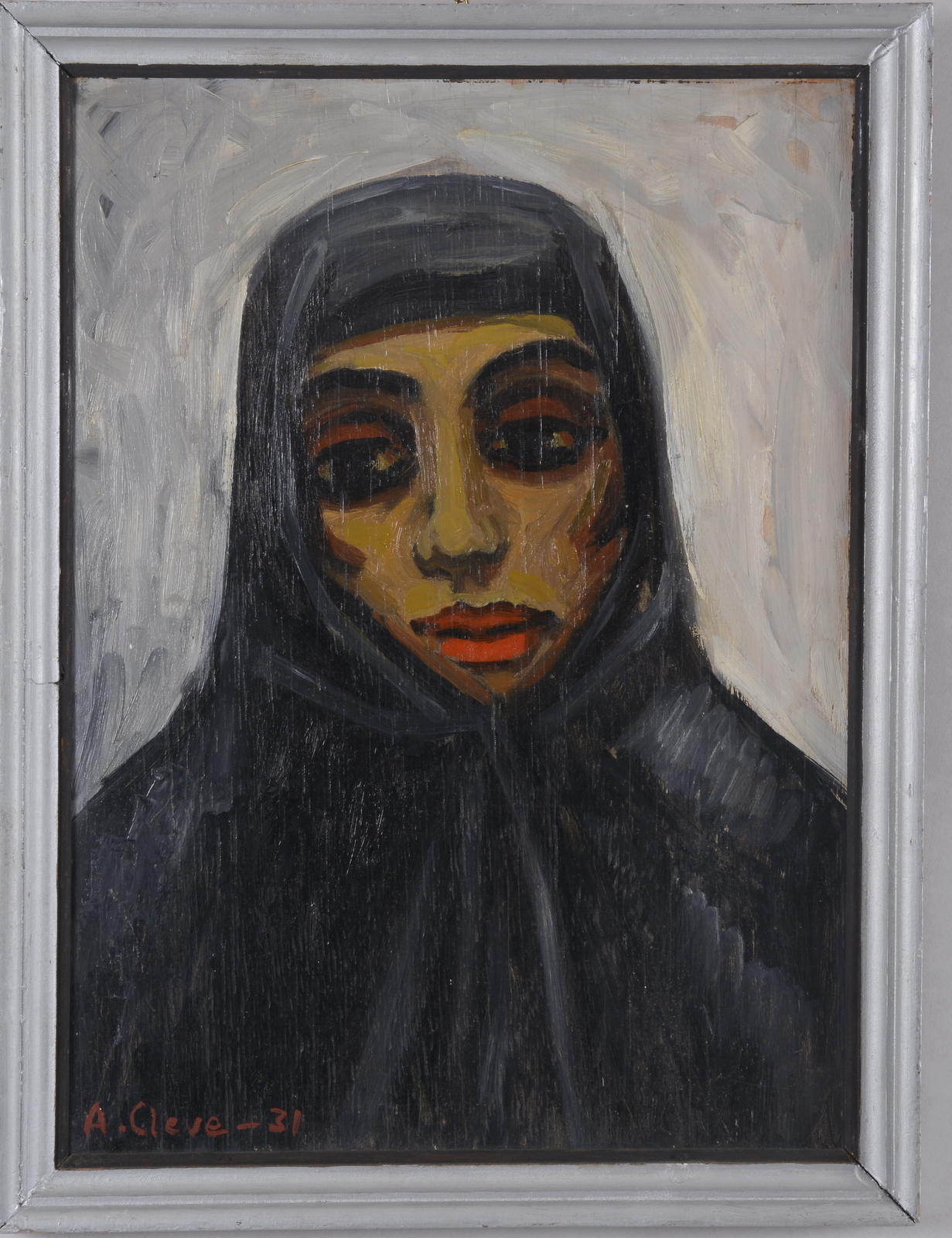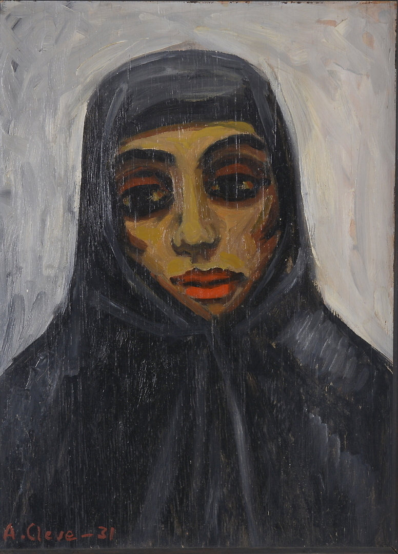 222181. AGNES CLEVE. Óleo sobre tabla de madera.