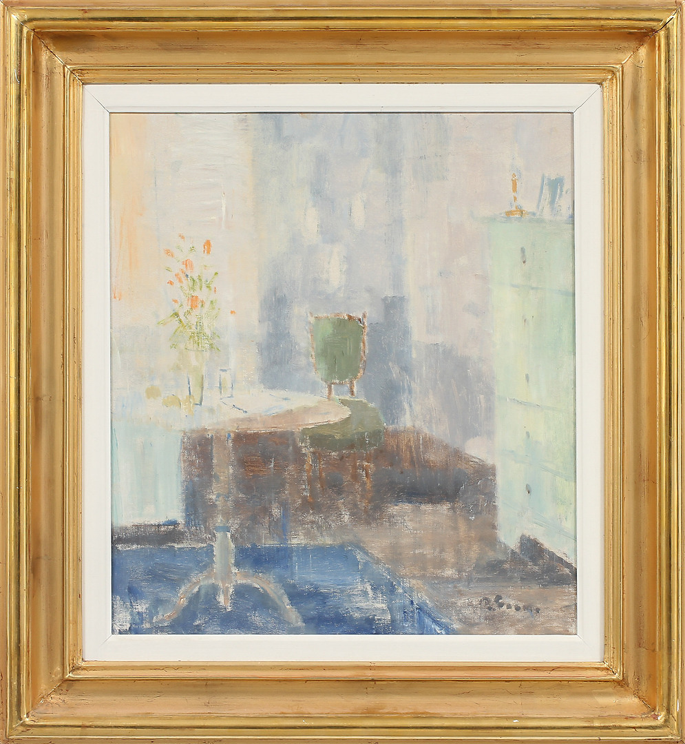 222428. RAGNAR FALK. Interior, óleo sobre lienzo, letrero.