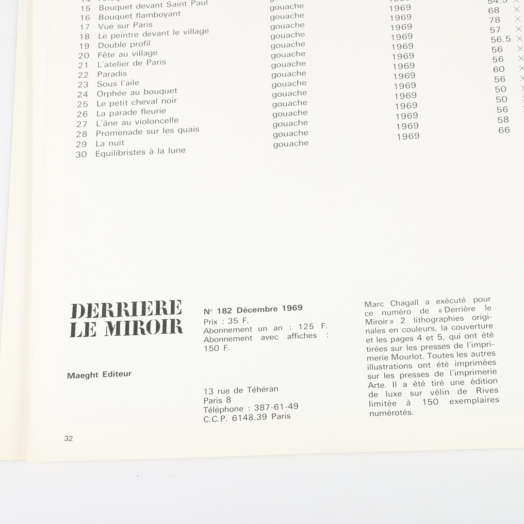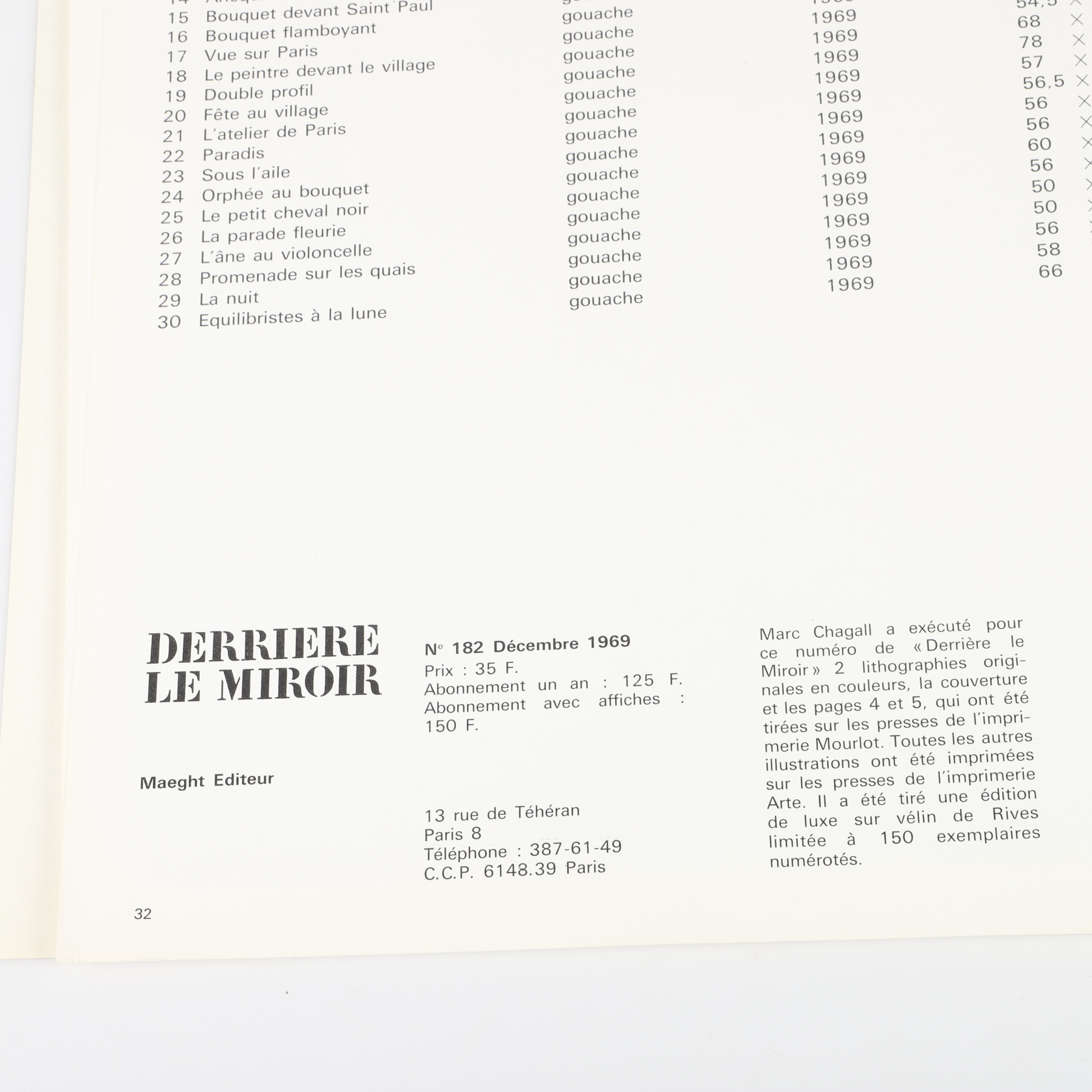 2226326. MARC CHAGALL. Derrière le miroir, nº 182, 1969.