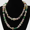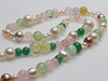 Perlas de agua dulce y perlas del mar del sur en diferentes colores, topacio limón, jade, cuarzo rosa y baquelita verde.