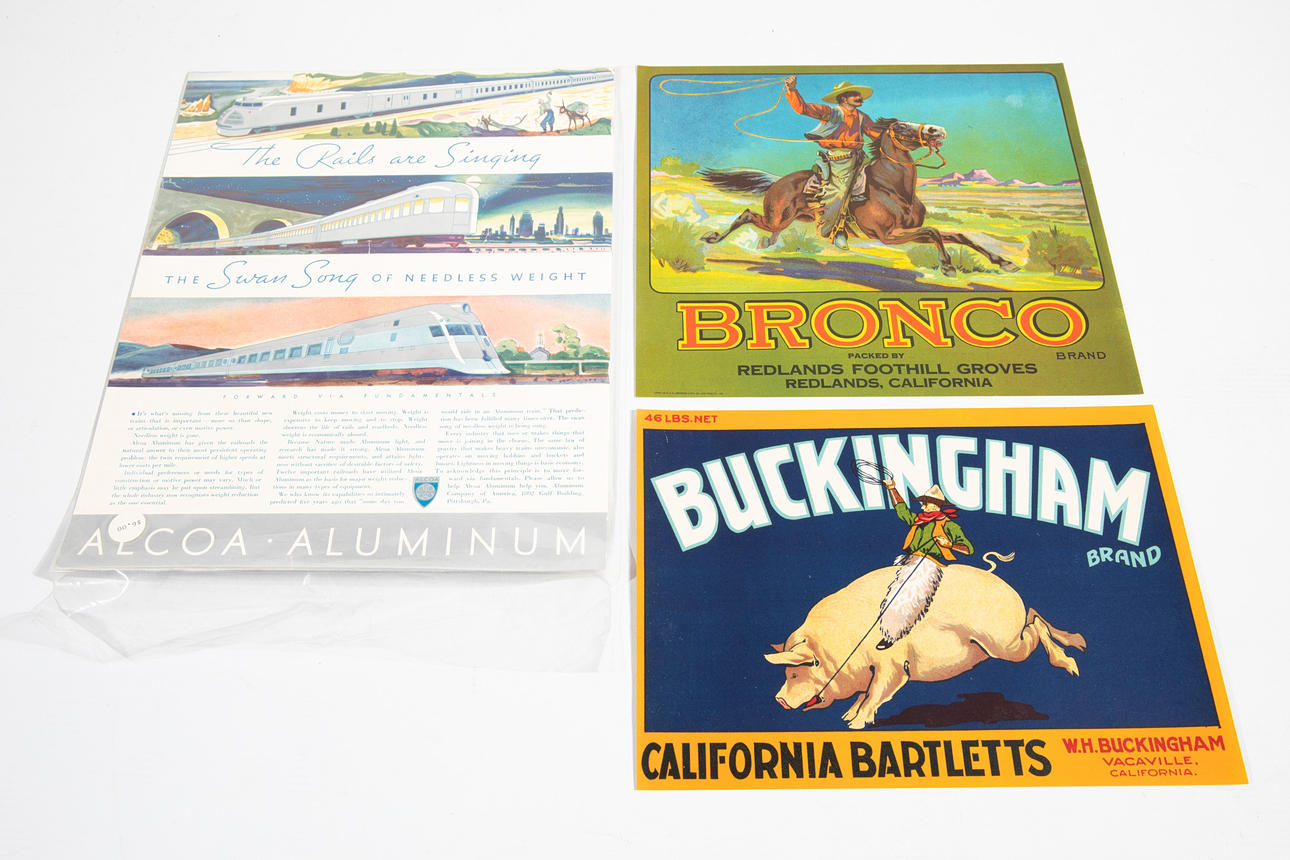 38 anuncios de diferentes artistas. 1920s-40s. litografías, por ej. T. montado sobre cartón. Buckingham, Bronco, Firestone, Alcoa Aluminium, StRaphaël Quinquina, Schooner, Polo, Double A Brand, Handsum, Washington Navels College Heights, Parade, Athlete, Fancia, Arboleda, Hi-Goal, Upon'Atom, Silver Moon, Sealed-pep, King's Cadets, Sails, Dominator, Kreme de Koke, Safe Hit, Jo-Jo, King-Pelican, SNO-Fed, Em-Eukal, Acier, Crüwell, etc. Los más grandes aprox. 35x28cm. ZT verso inscrito a lápiz.