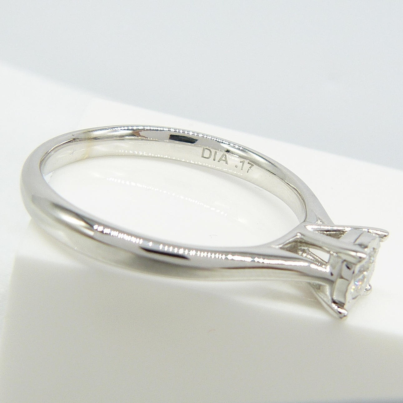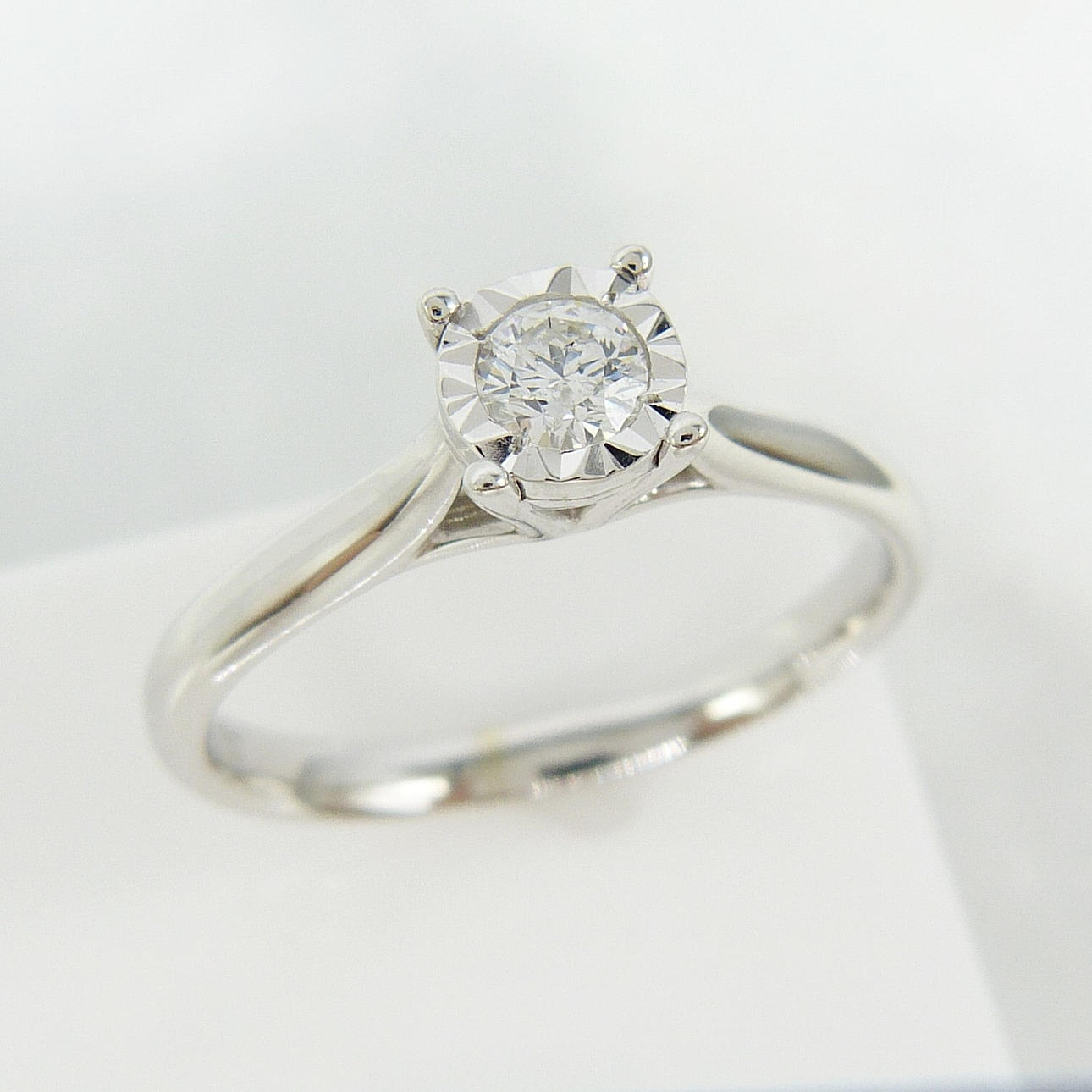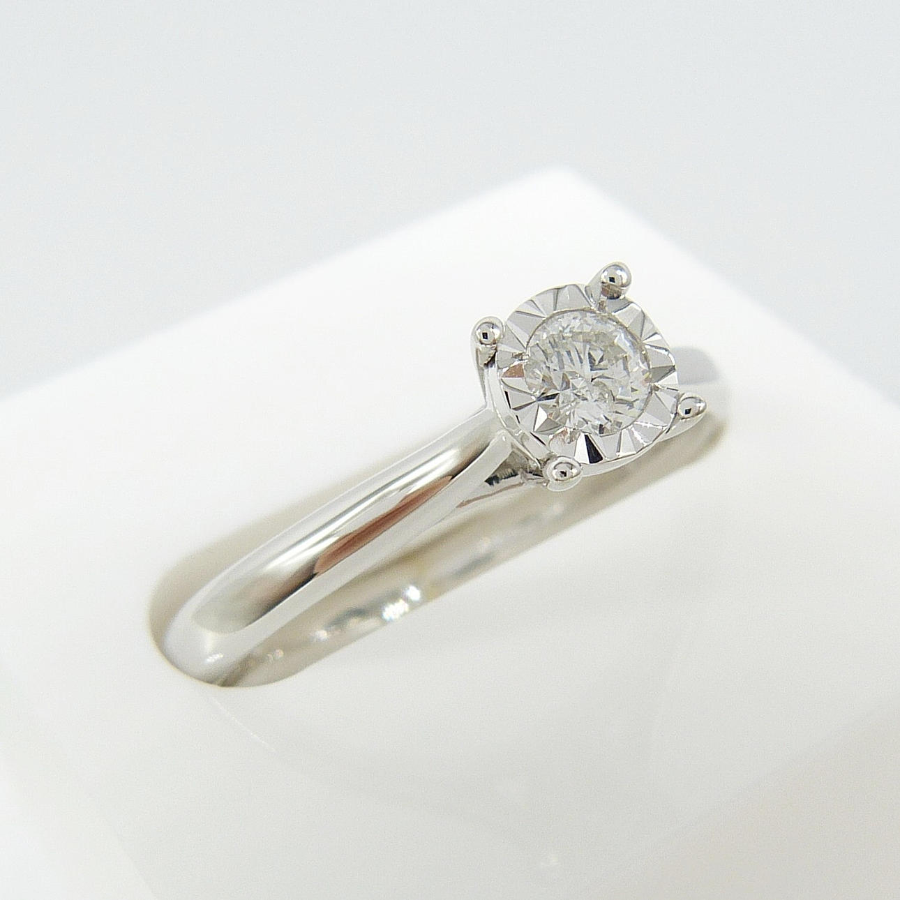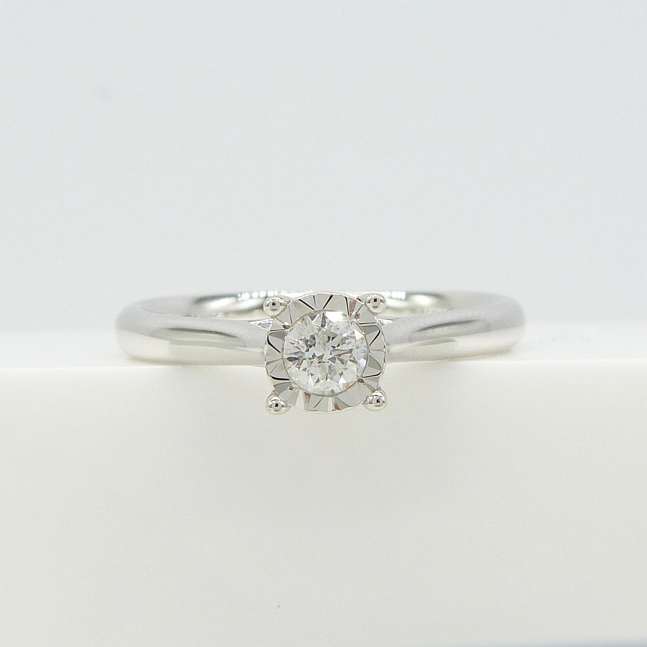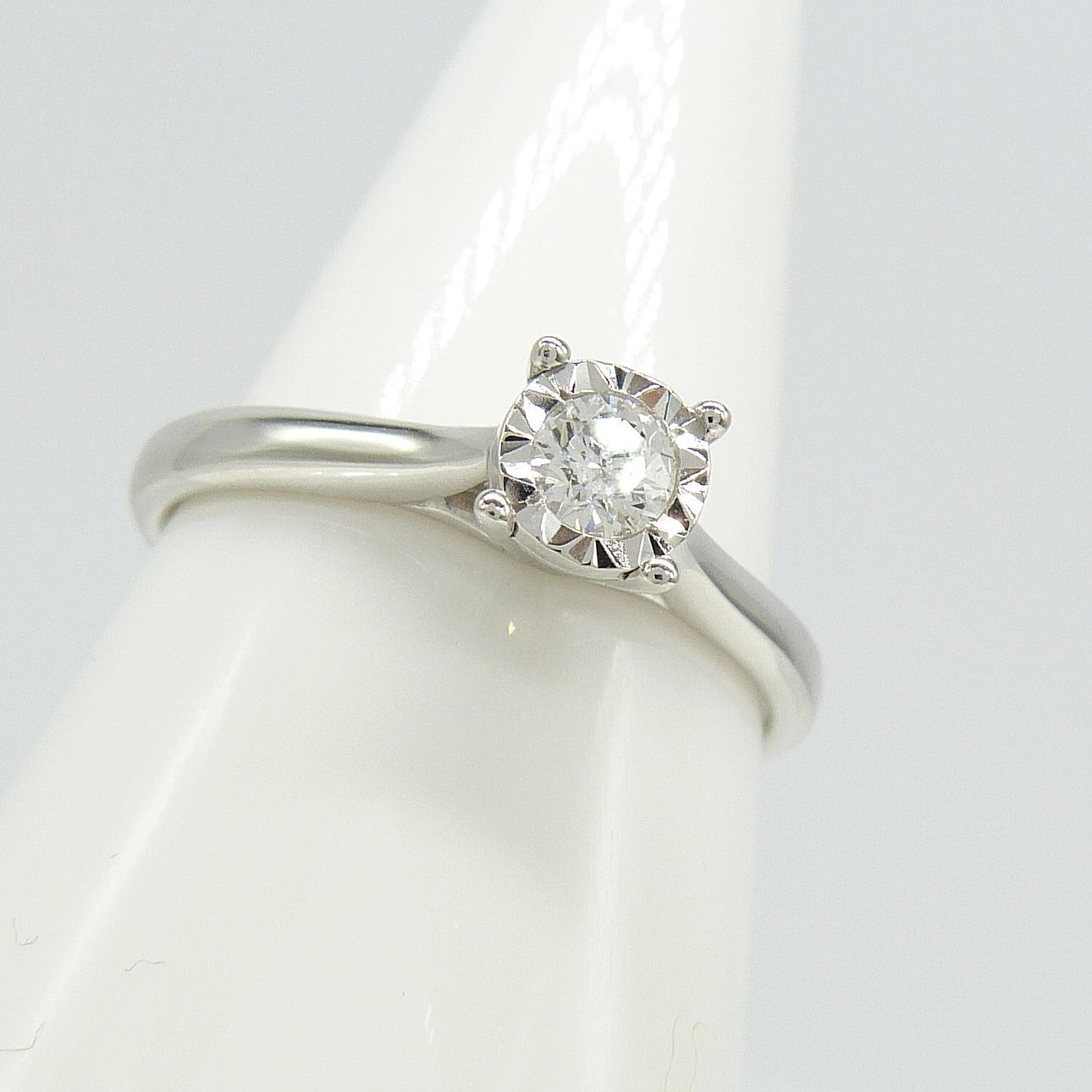 Un anillo de oro blanco de una sola piedra de 0,17 quilates de diamantes redondos de talla DIAMANTE .