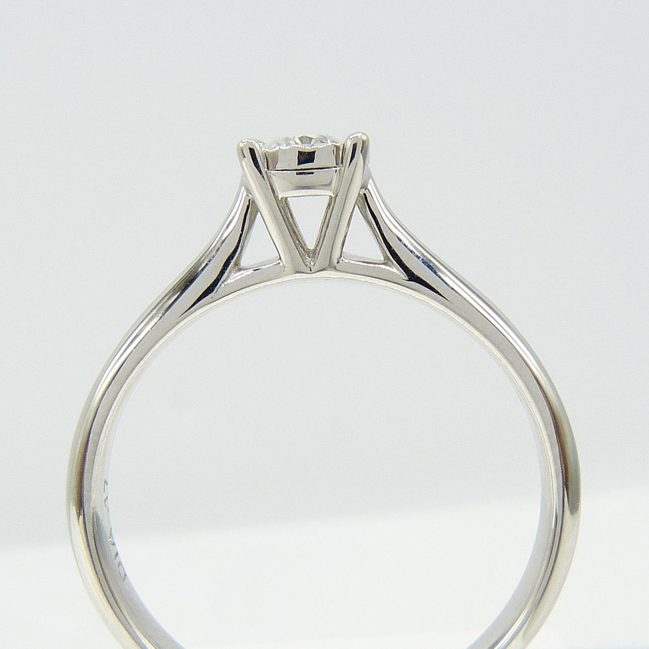 Este anillo solitario está engastado en garra con un diamante redondo de talla brillante de 0,17 DIAMANTE. Se sostiene en un bisel de 4 garras con corte de diamante.