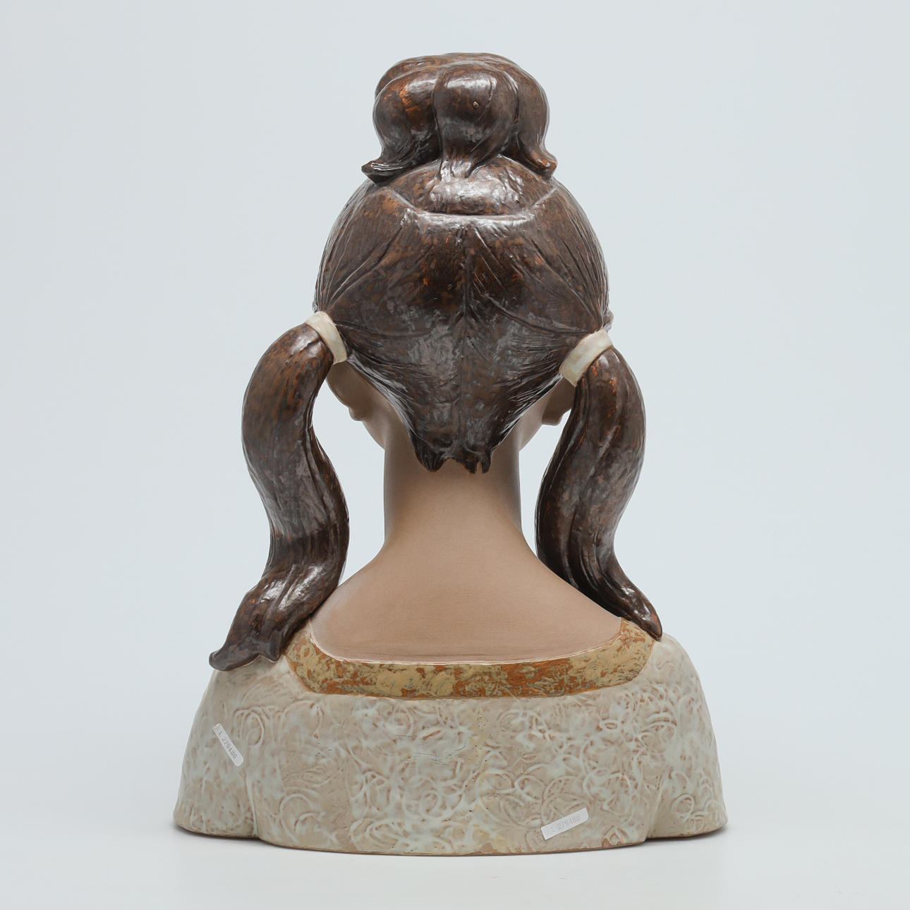 Loza parcialmente vidriada, marcada en el fondo. Altura aproximada 44 cm.