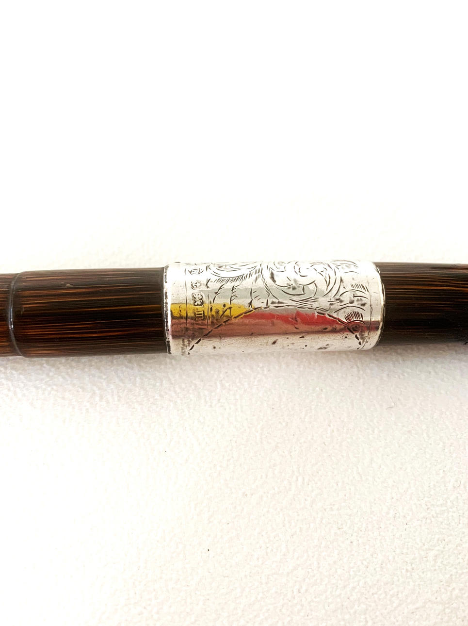 Bastón de madera de perdiz con punta de plata, L. 87cm.
