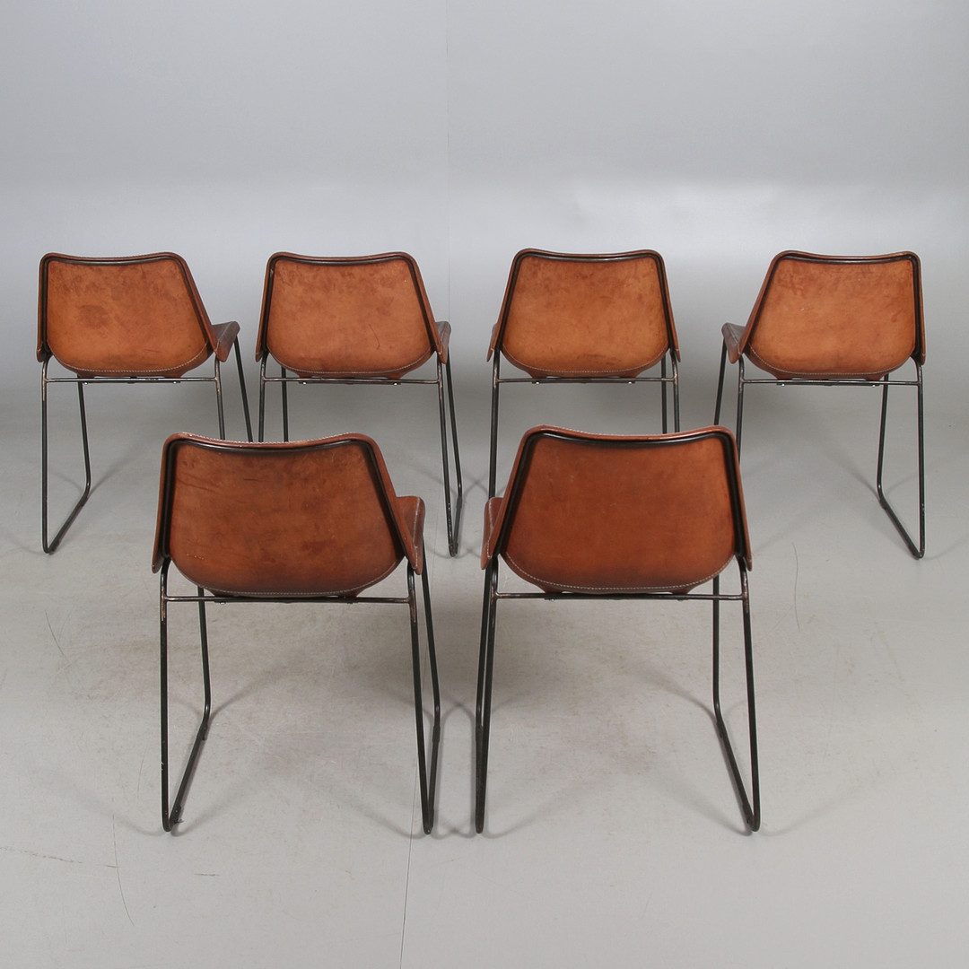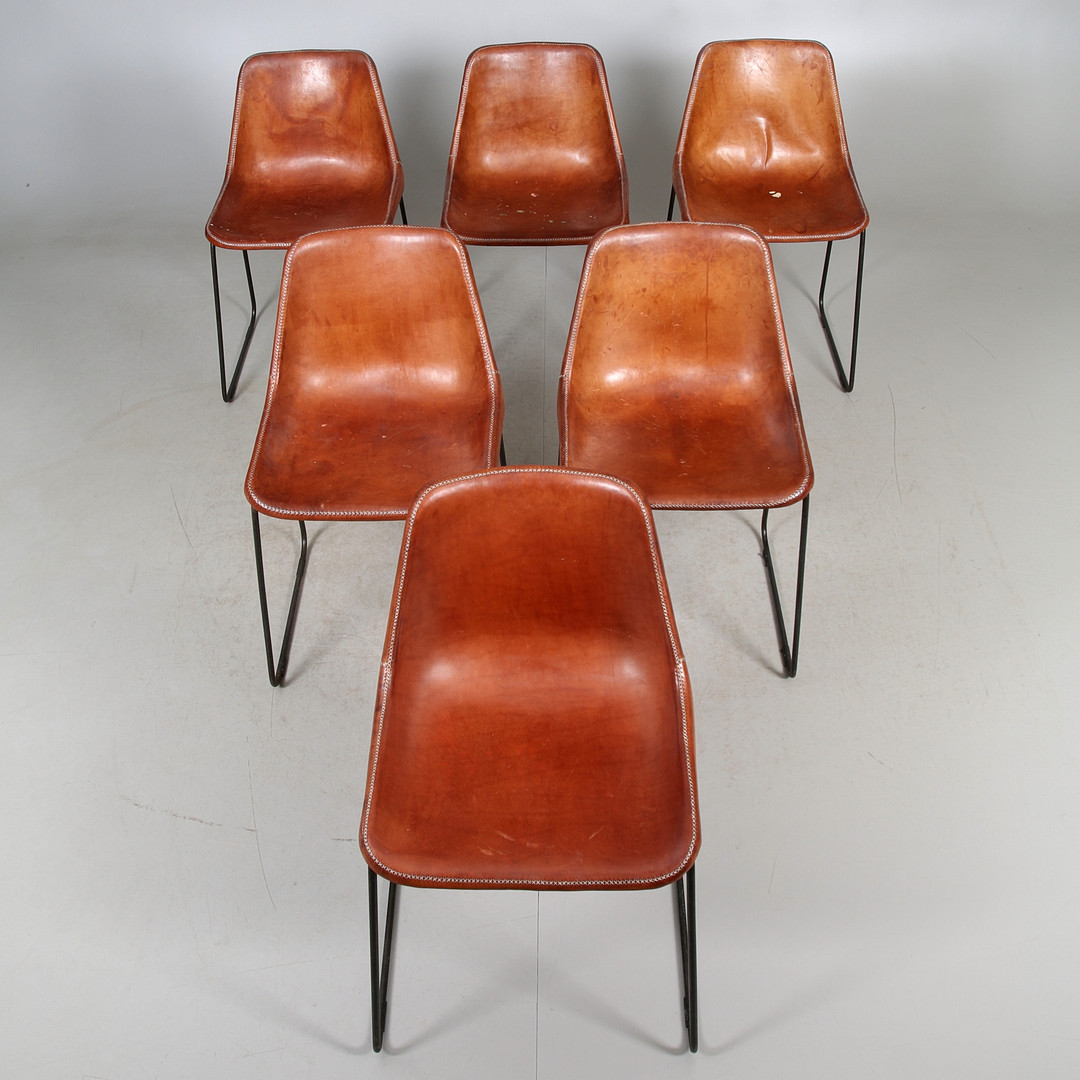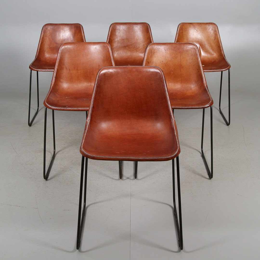 2279554. SILLAS, 6 uds, cuero, metal, Sol & Luna, España.