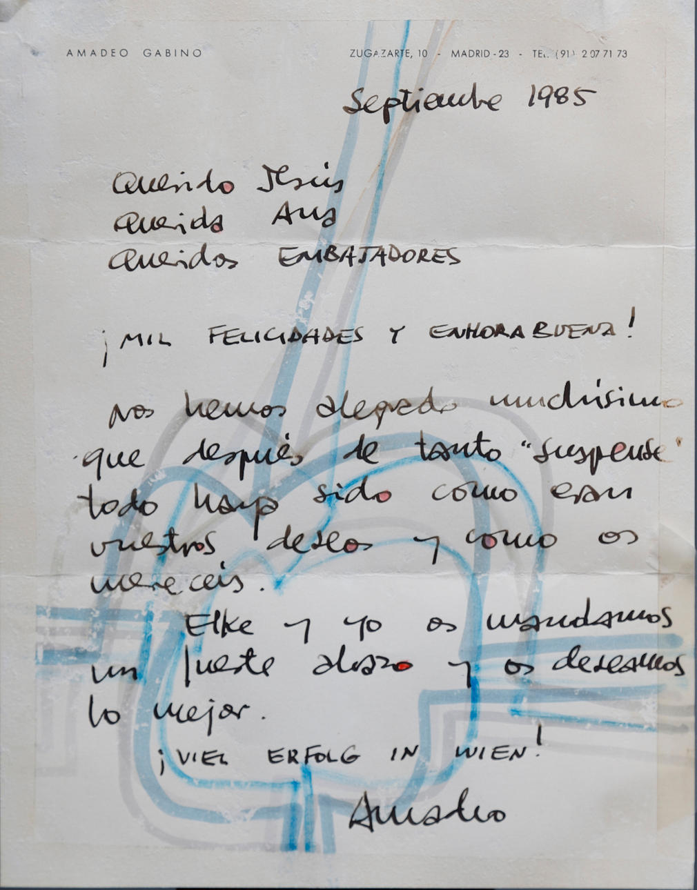 Firmado, fechado en 1983 y justificado "P/A XV/XV". Adjunta una carta del artista fechada en 1985 con dibujo y dedicatoria