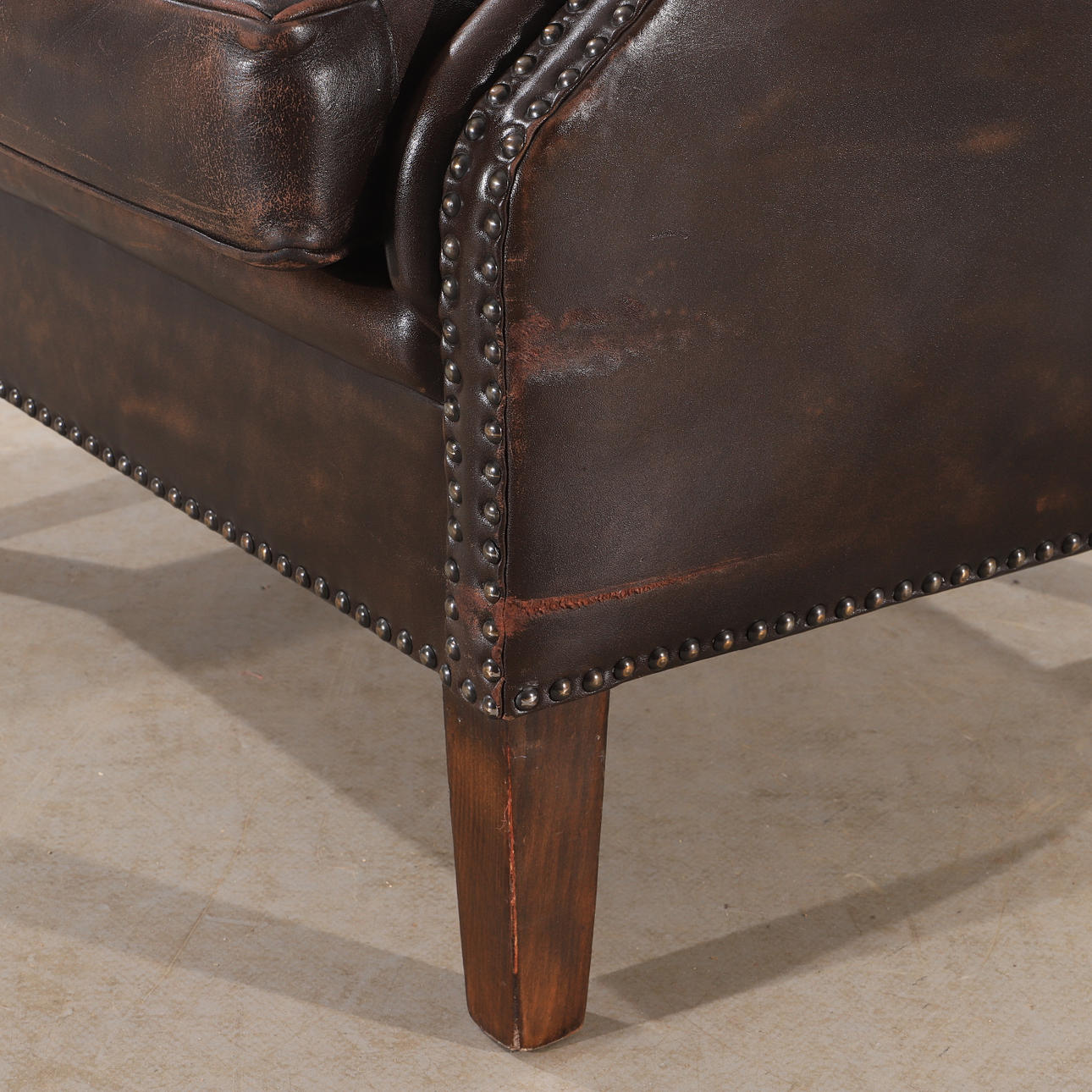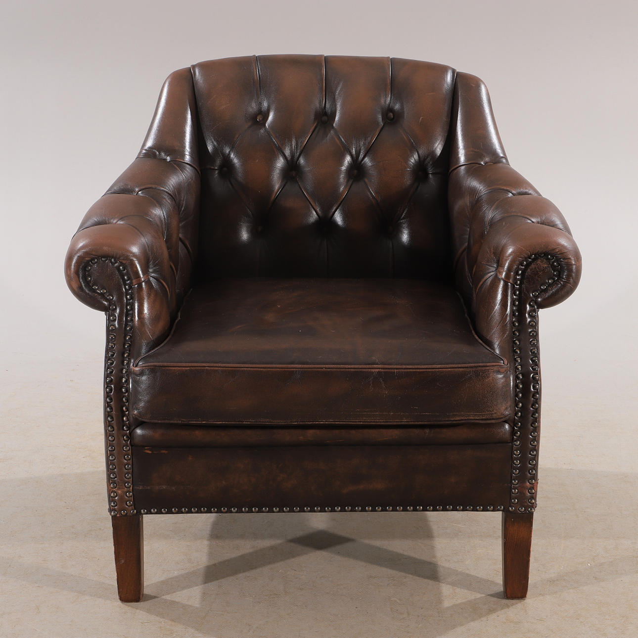 2283513. SILLÓN, cuero marrón, estilo inglés.