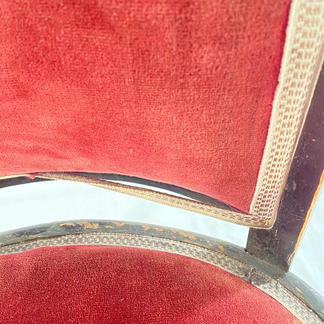Asiento y respaldo tapizados en terciopelo rojo, altura/altura del asiento aprox. 96/47cm.