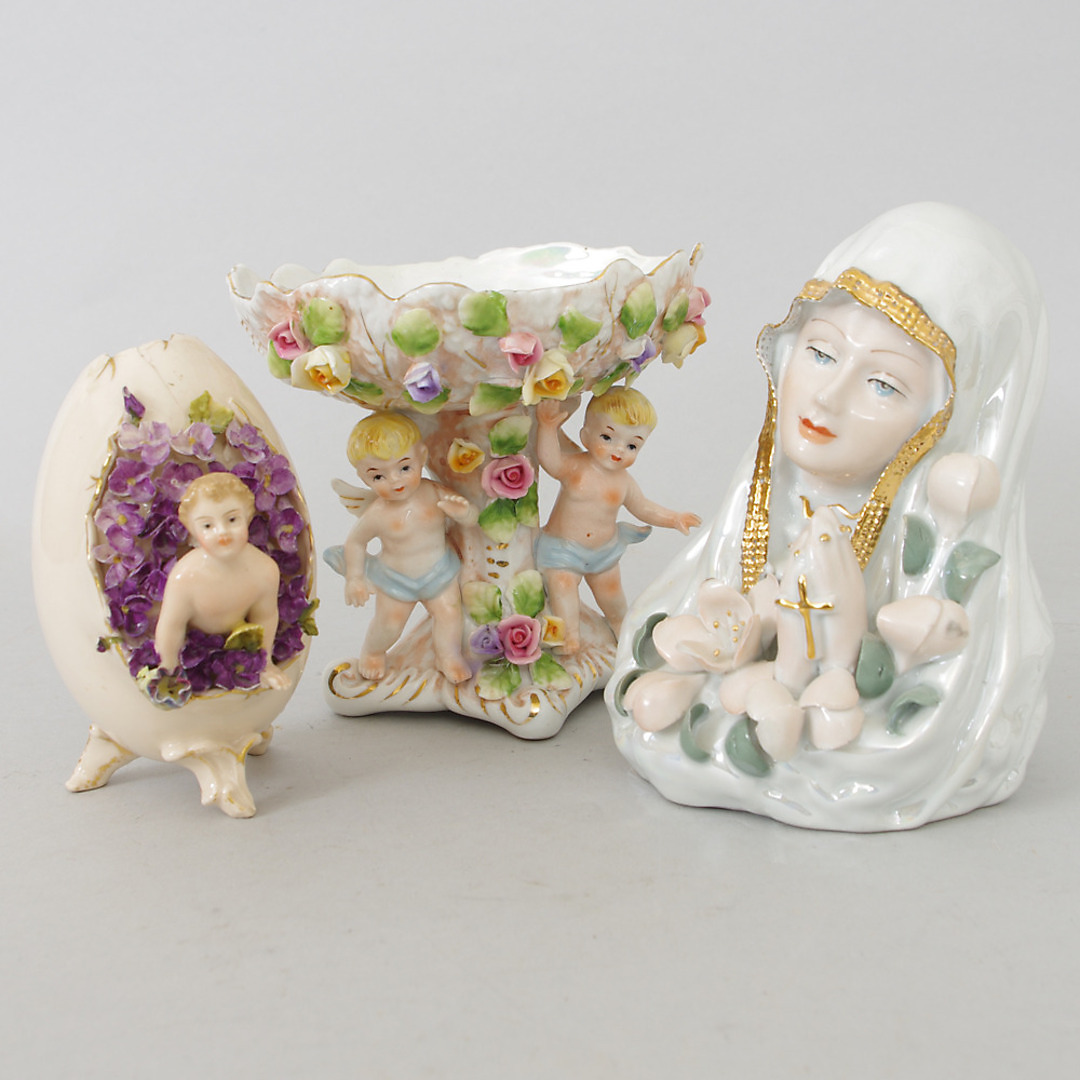 229910. 2 FIGURAS Y CUENCO, porcelana.