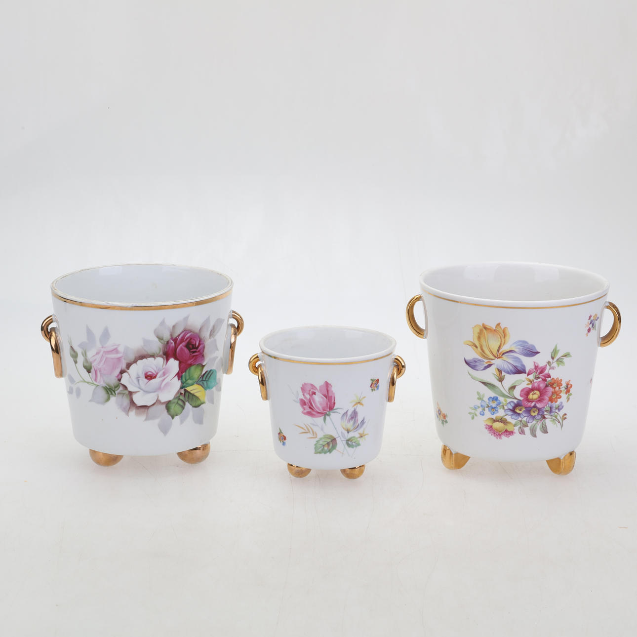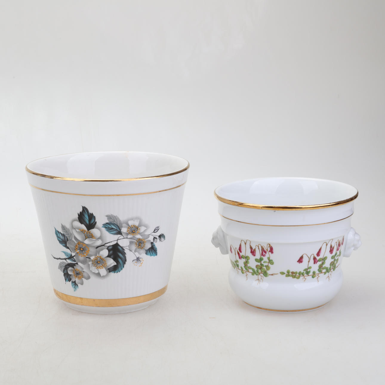 2307050. PORCELANA, 7 partes, Florero y forro etc.