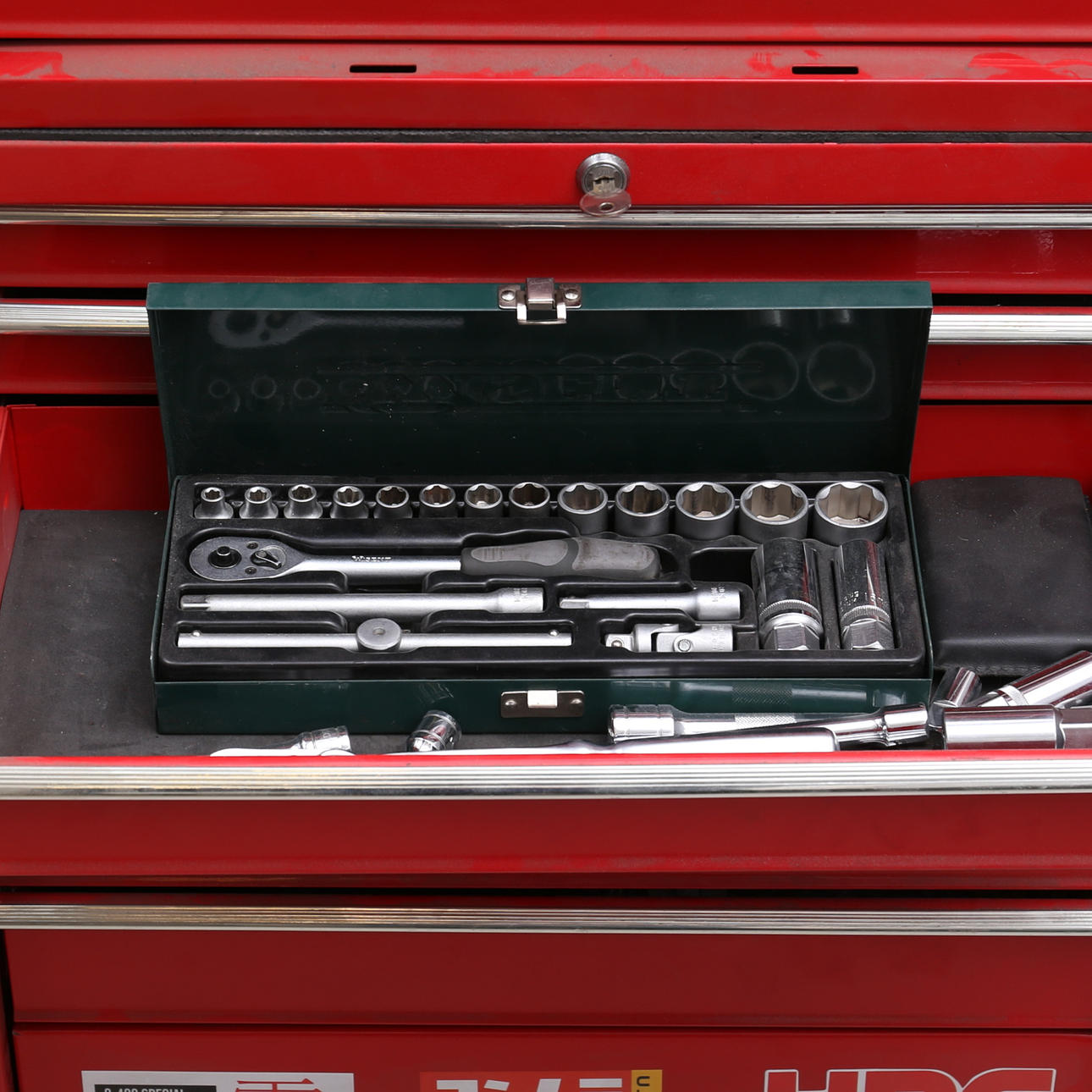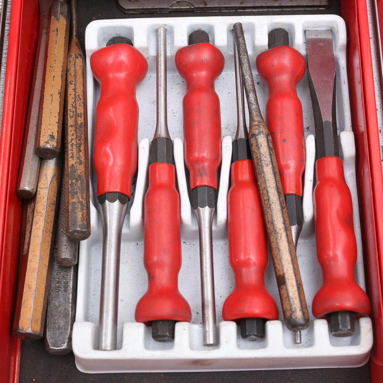 Contiene, por ejemplo, barra de remaches, cizallas para chapa, llaves de tubo, llaves de estrella, llaves de estrella, mandril.