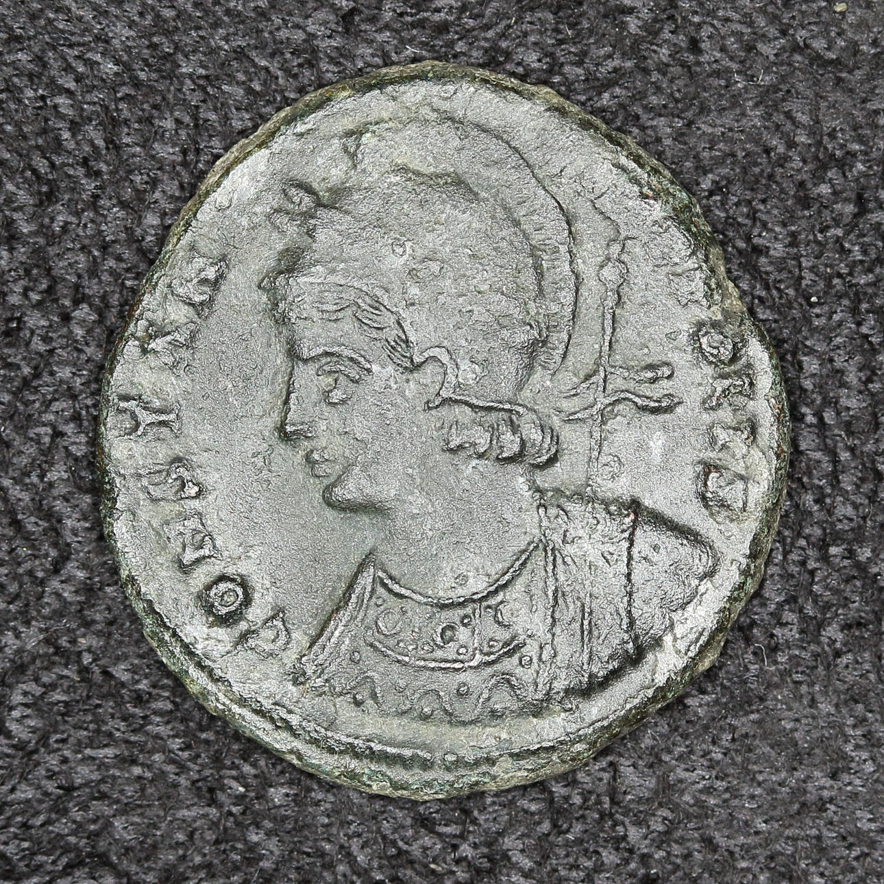 Rev: LIBERTAS COS IIII, Libertas se coloca a la derecha, sostiene el píleo y extiende la mano; SC sobre campo.