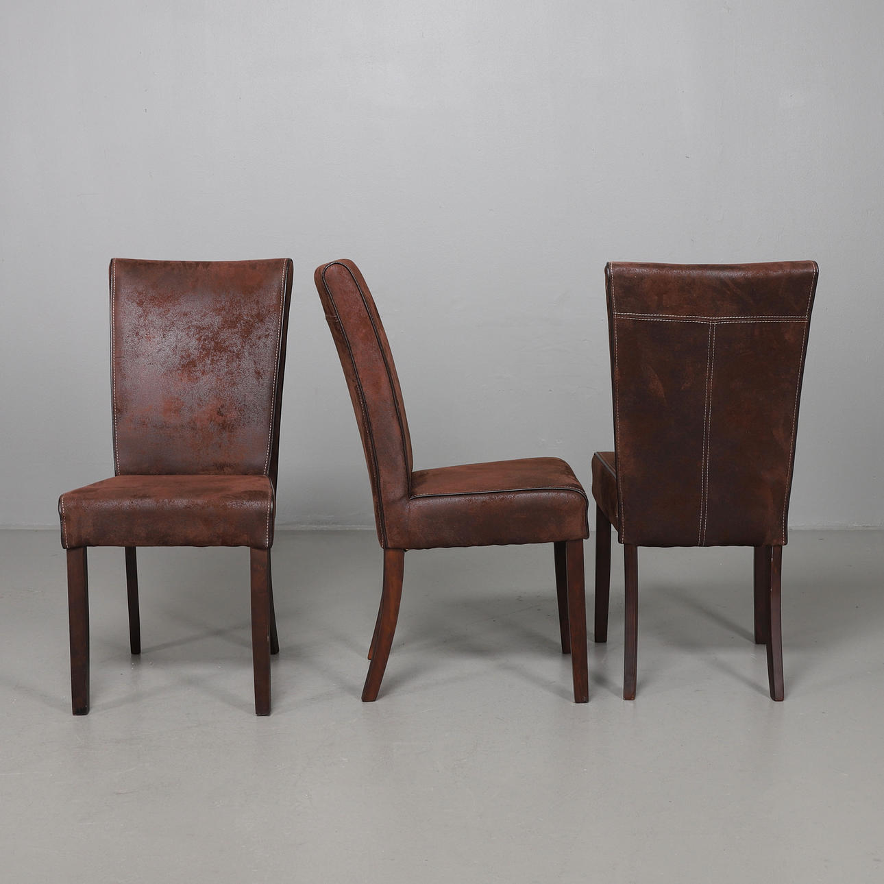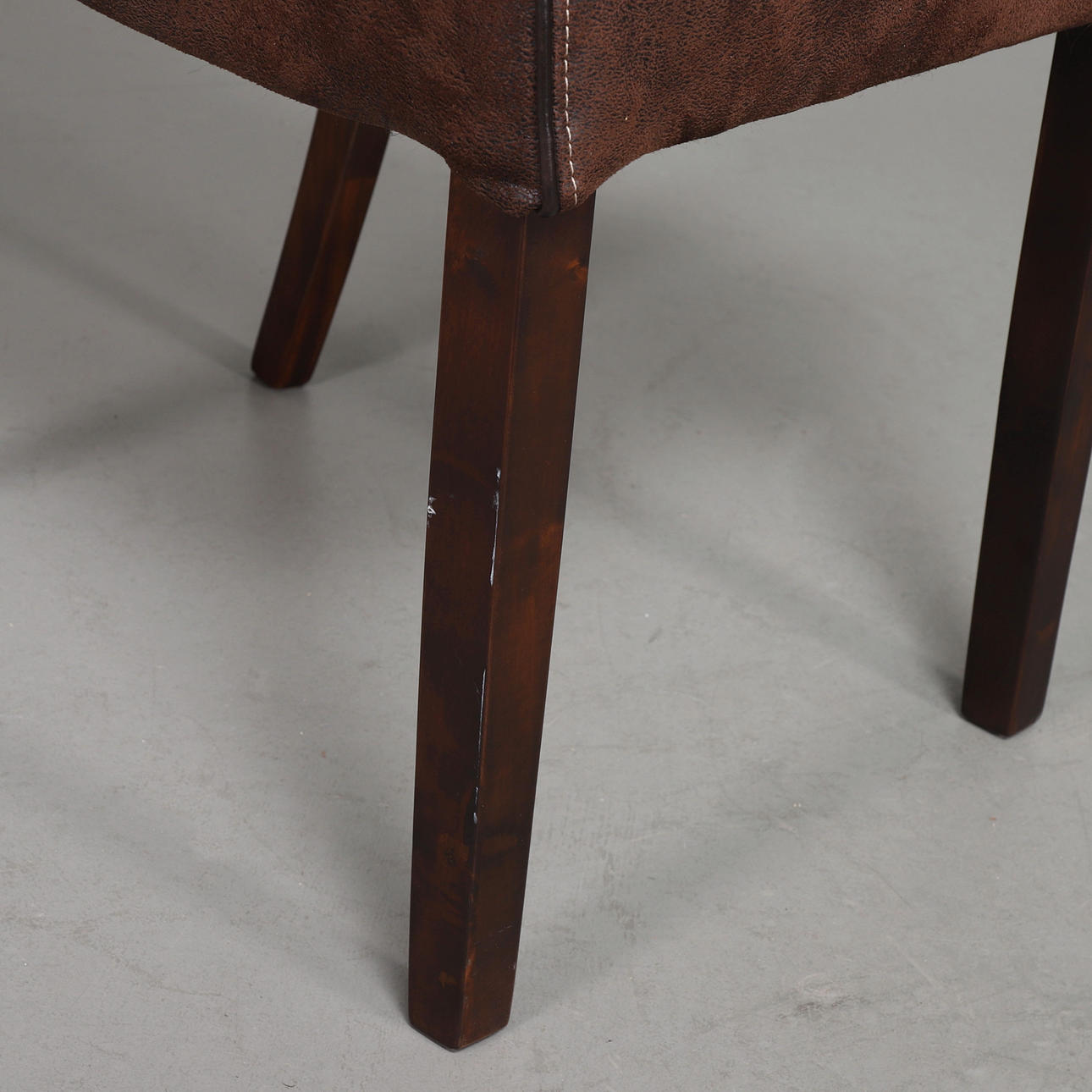 8 sillas de comedor tapizadas en tela imitación gamuza.