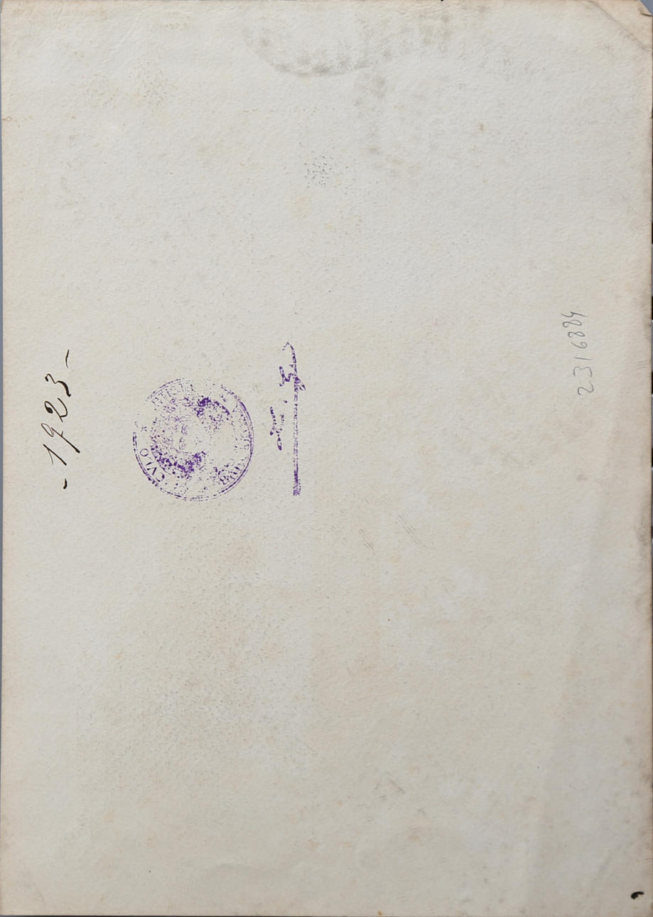 Firmado. En el reverso, sello húmedo del Reial Cercle Artístic, con la firma de su presidente Lluís Graner, y nº de inventario (1723) correspondiente a la tómbola realizada en 1895.