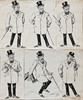 Seis dibujos a tinta sobre papel pegados a papel