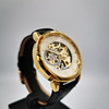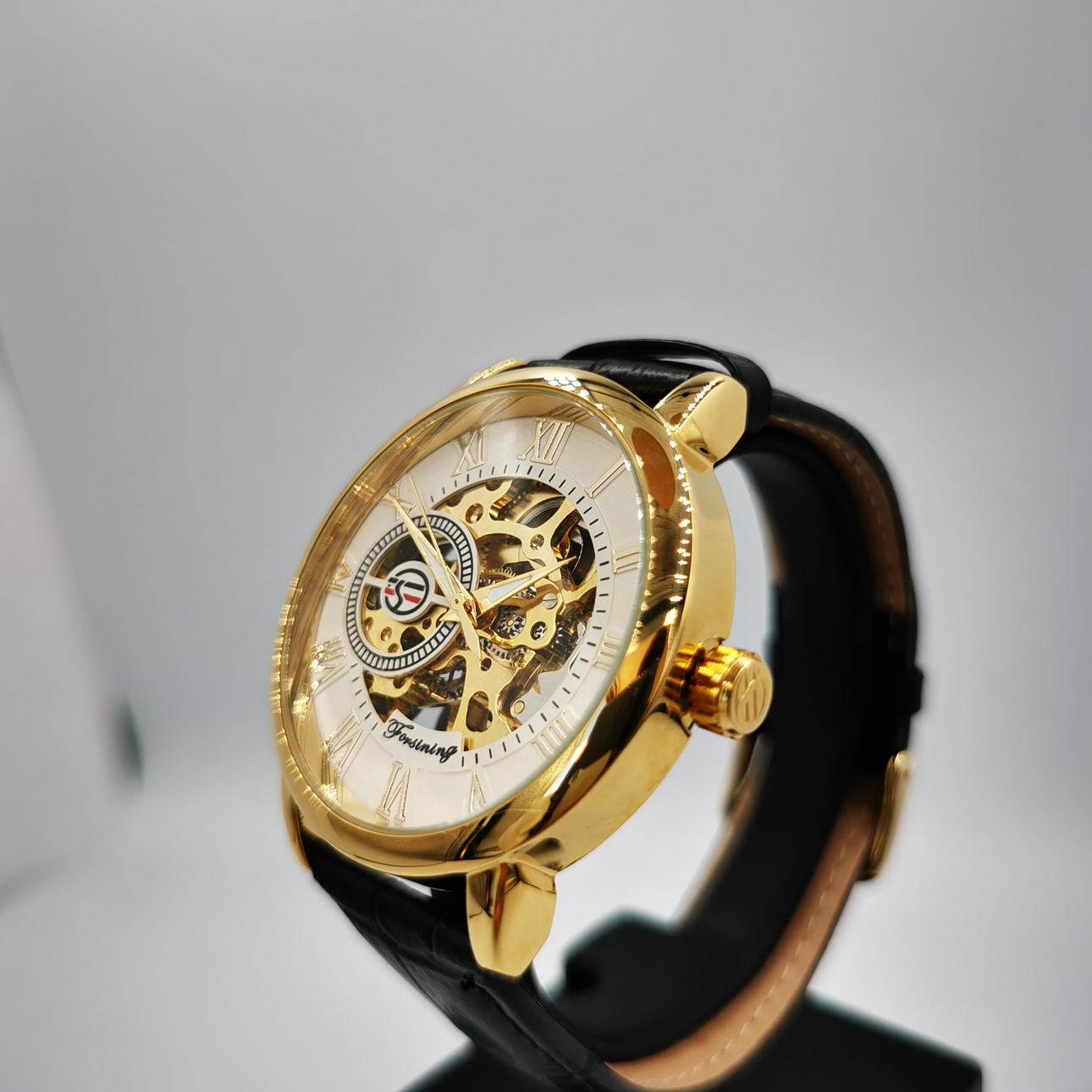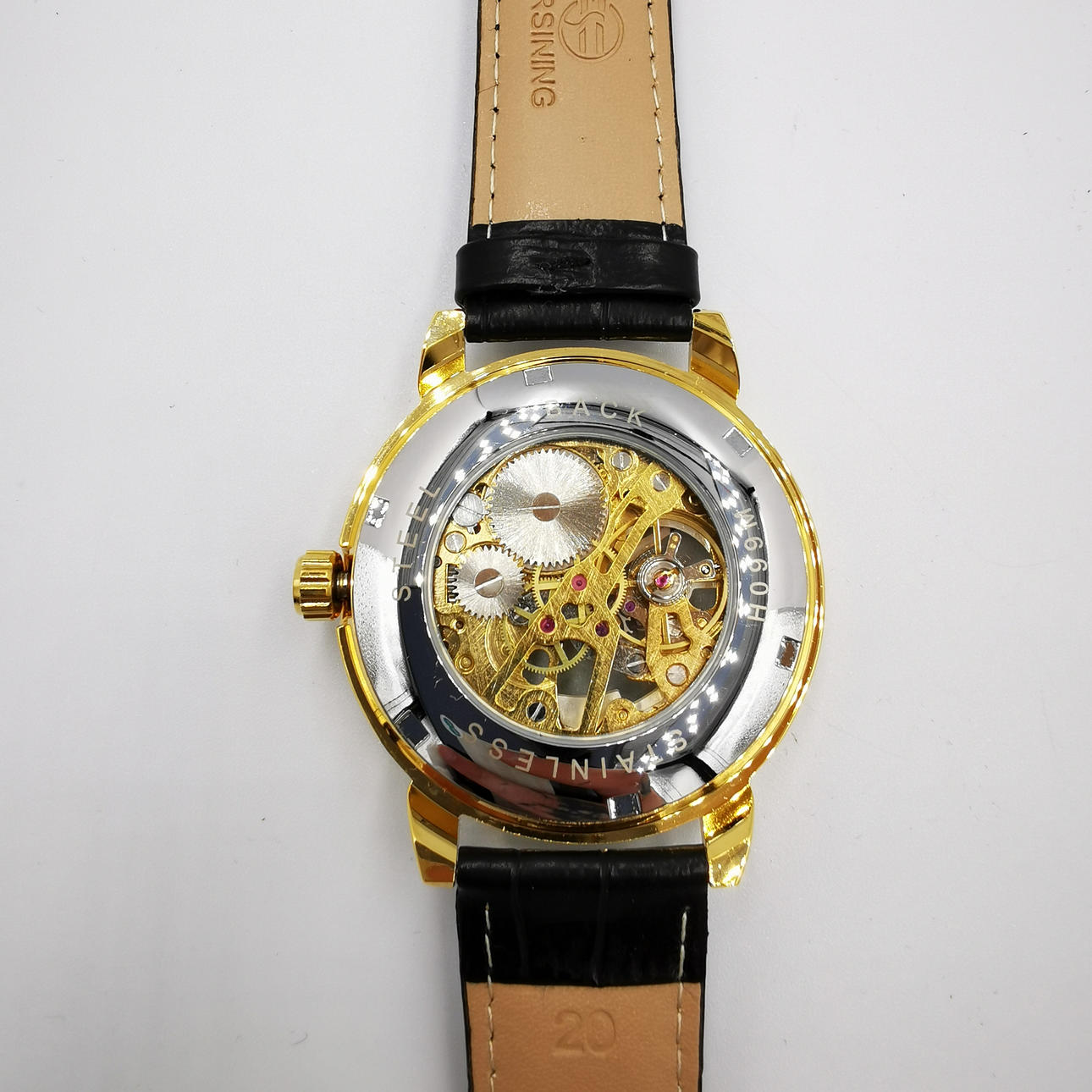 Marca: Forsining Número de modelo: H099M Color de la carátula/esfera: Esqueleto blanco Color del bisel/caja: color dorado Tipo de correa: Estilo de la correa: Informal, Vestido Pantalla: Analógico Tamaño de la caja: 41 mm (sin enrollador) Movimiento: Mecánico Peso total (aprox.) : 55 gramos.