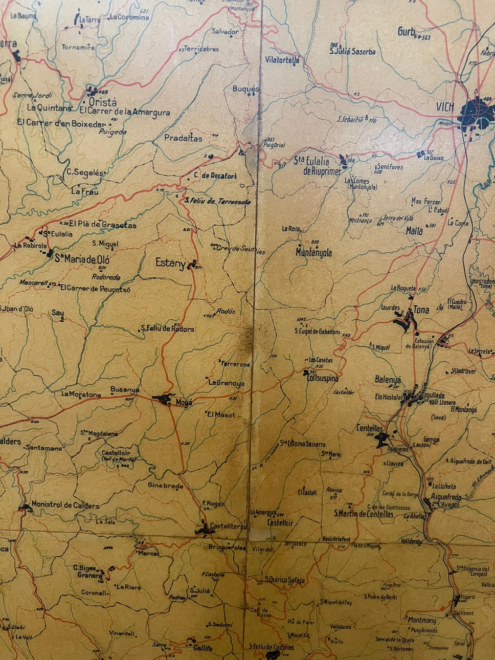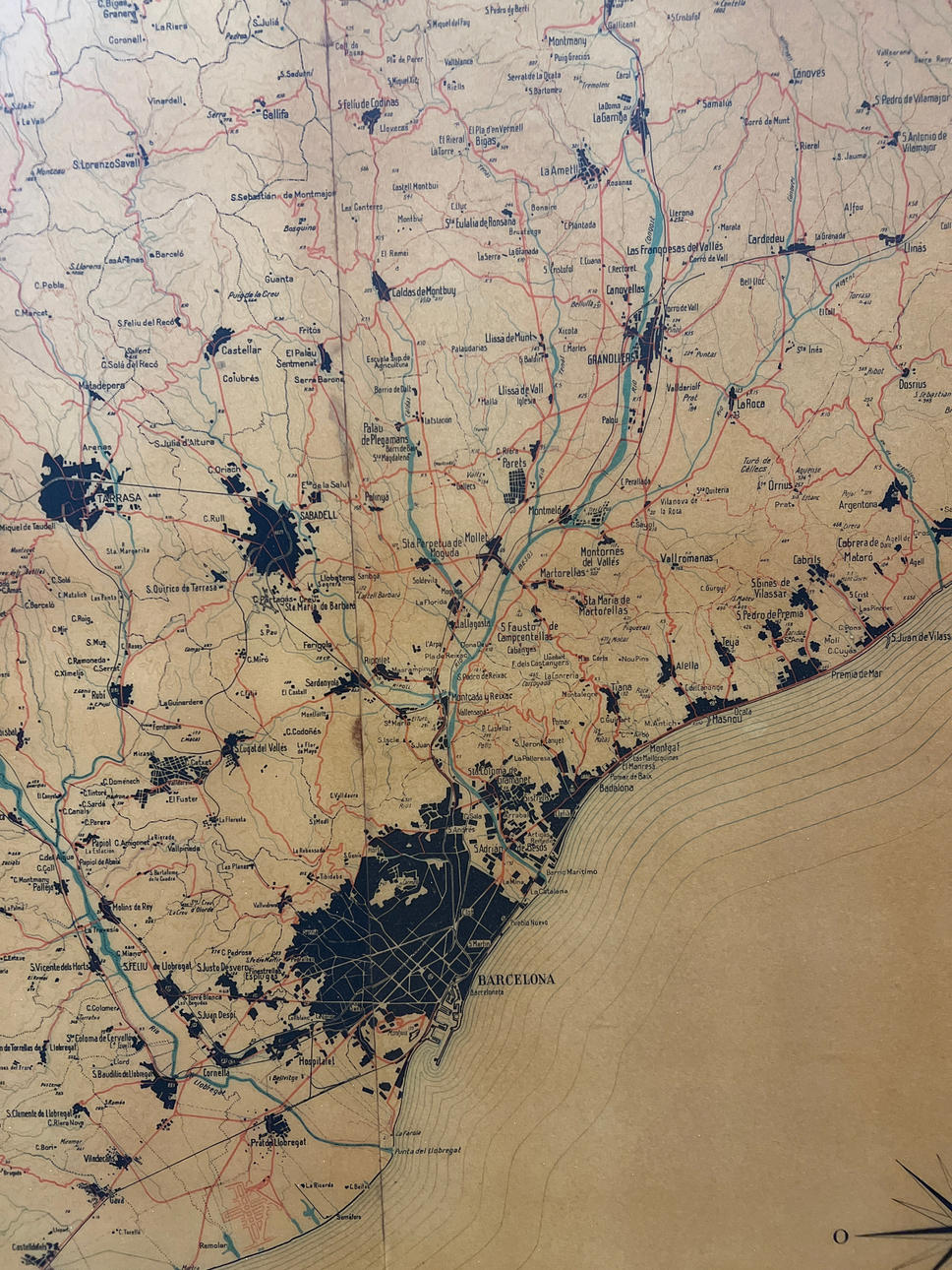 MAPA DE LA PROVINCIA DE BARCELONA 1950.