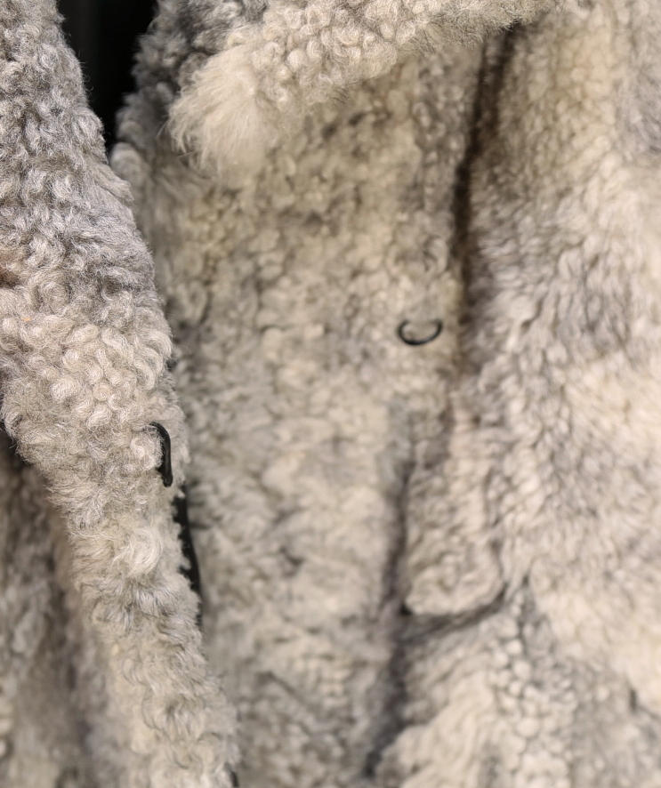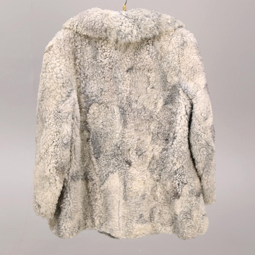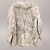 Dos bolsillos laterales, abotonados con corchetes. Largo de espalda 75 cm, largo de manga 58 cm.