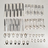 12 cucharas de postre 12 tenedores de cena 11 cuchillos de cena con hojas de acero inoxidable, 11 tenedores de cena 11 cuchillos de cena con hojas de acero inoxidable 10 cucharaditas, (67).